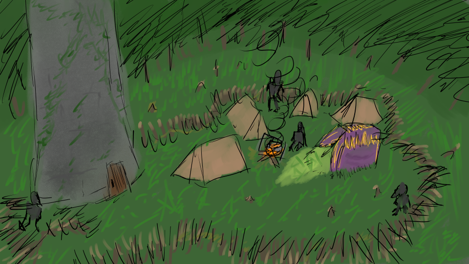 Well, at least you know the exact surroundings of the camp, and have a vague idea of their composition. You know one took off running, and it wasn't towards town...