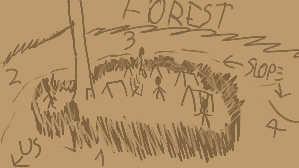 The entire camp sits on an elevation, with the tower at one end of it. The slope around is going to be mean to fight up, and there's only one visible entrance at Side 1.