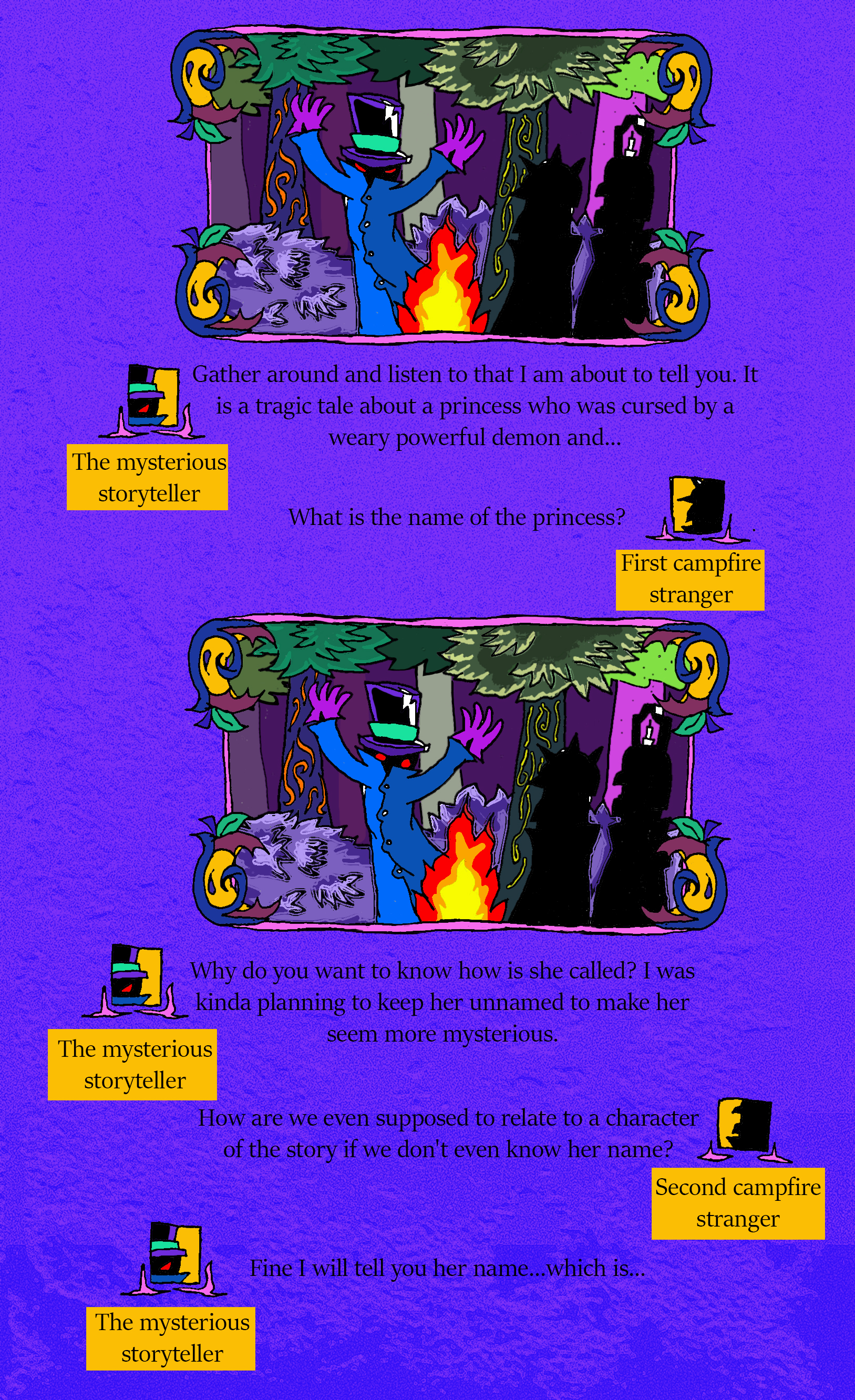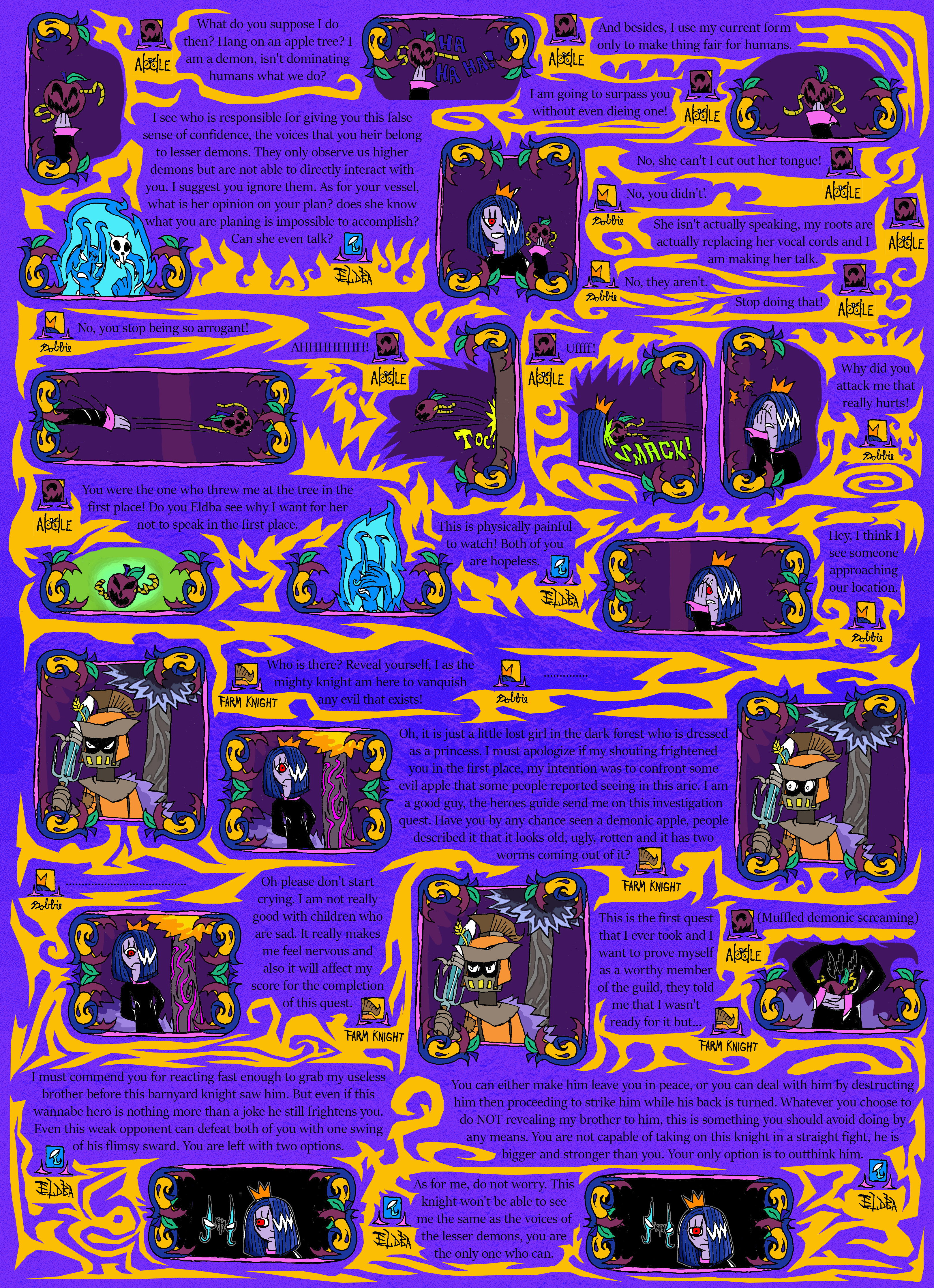 I have an idea, Eldba, tell me if you think it'll work or not: Since the farmer could probably still think Bobbie is still just a child, maybe we can have Bobbie pretend to be a girl who heard stories of Abdle and the princess and wanted to pretend to be that princess for fun so she dressed up like the princess and had a puppet of a demon apple made.