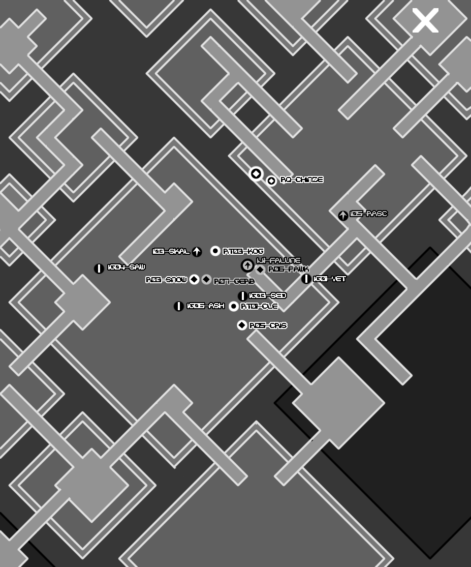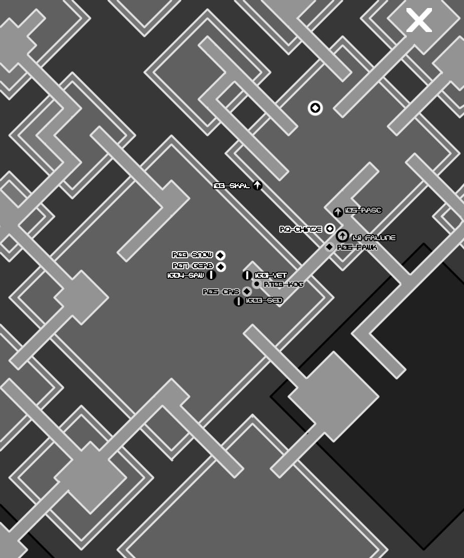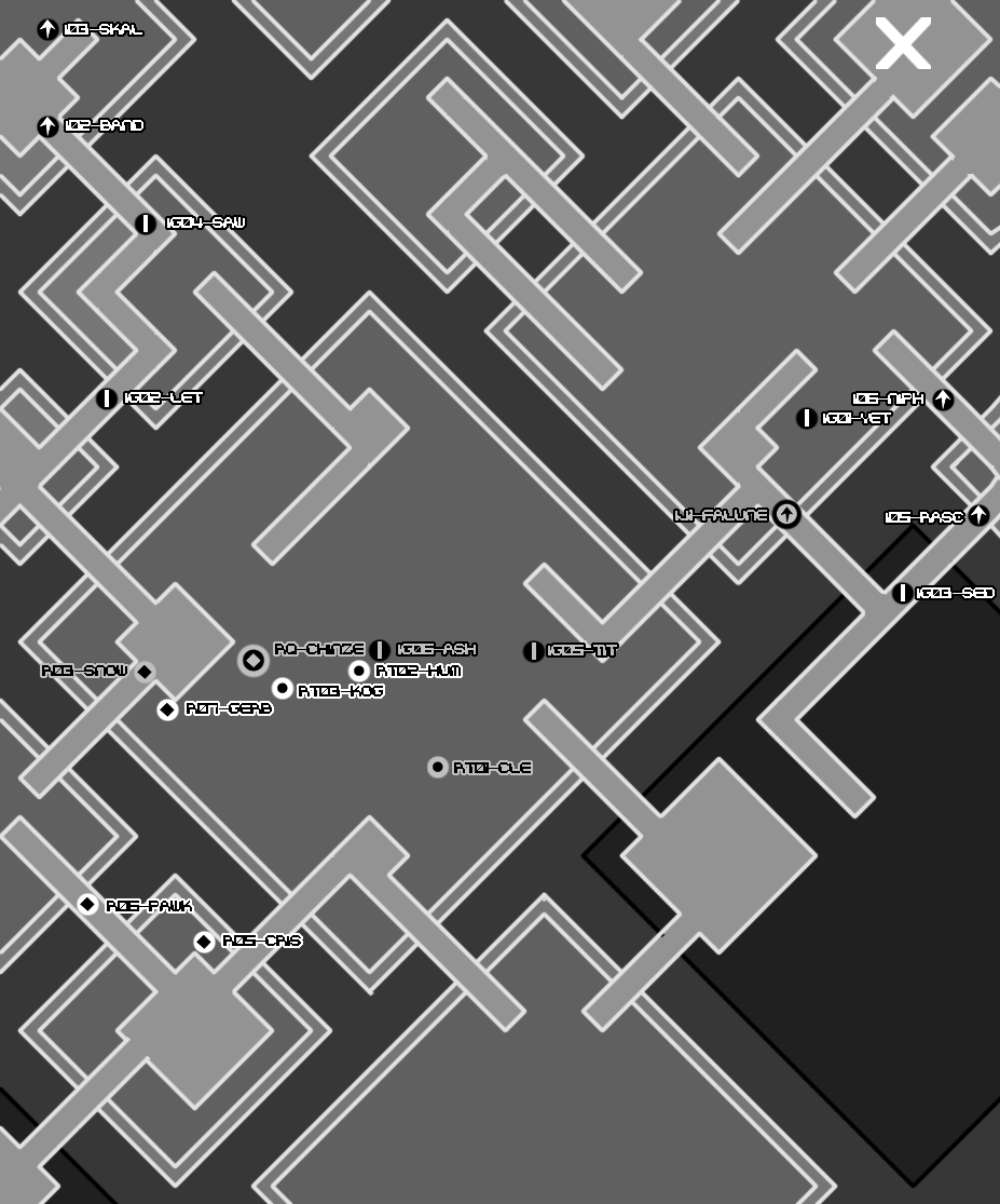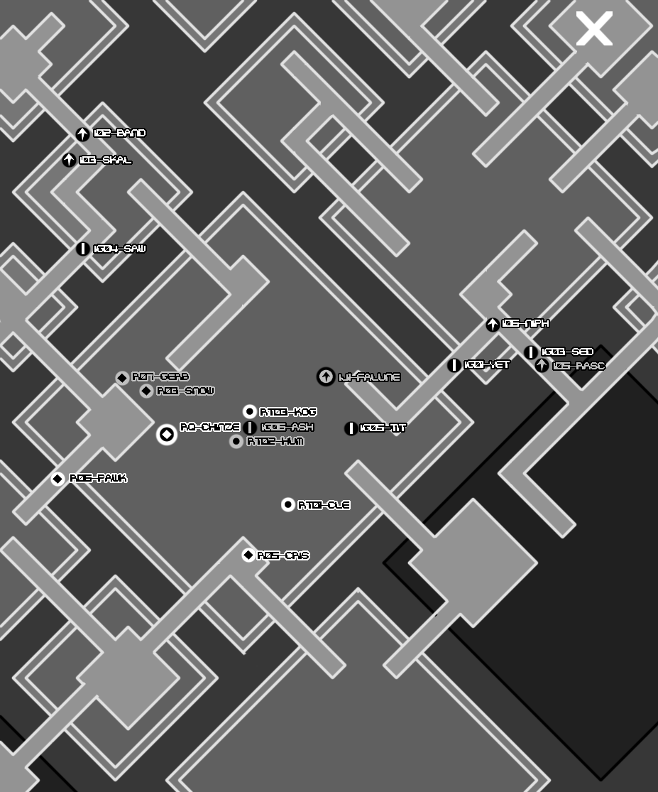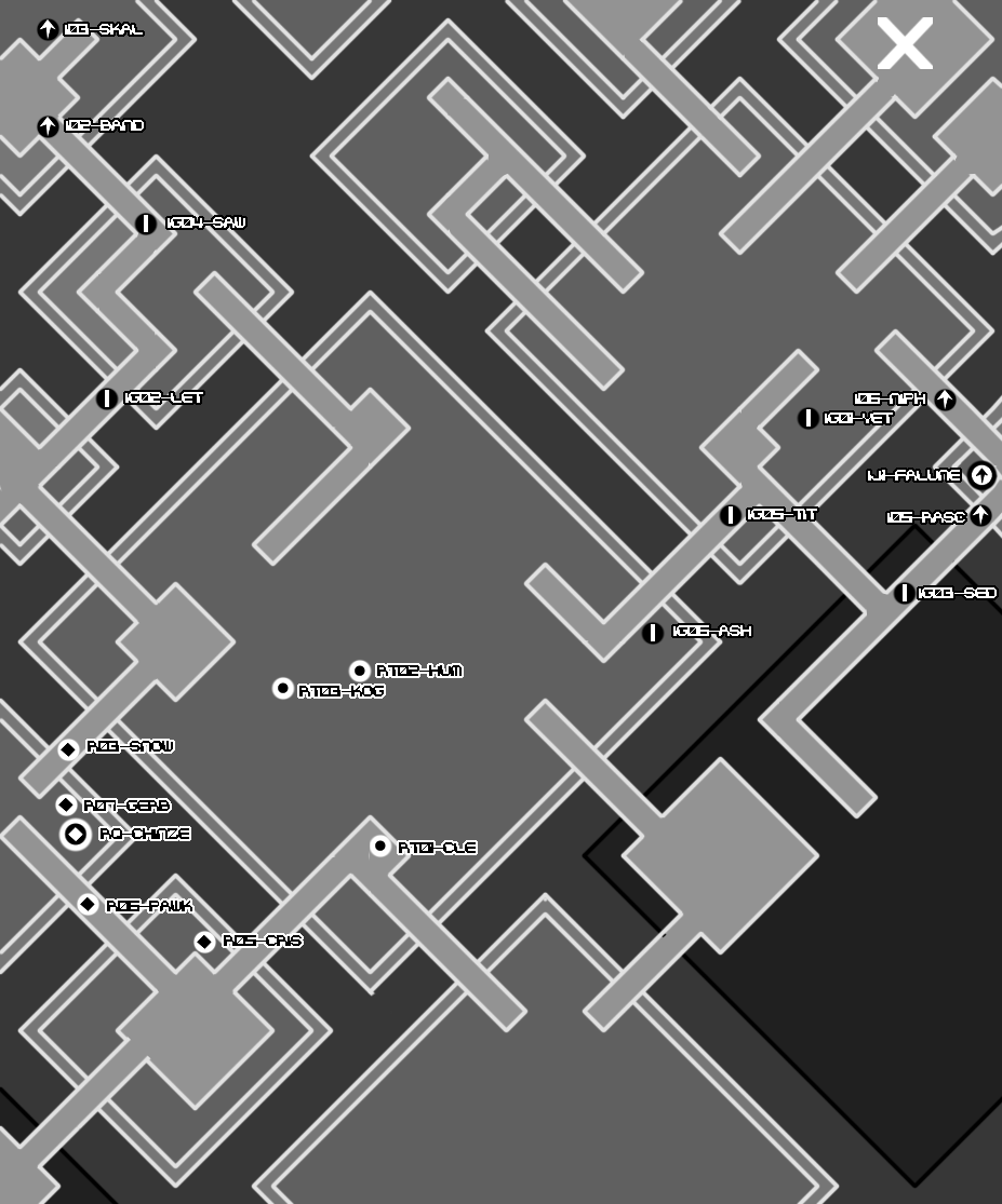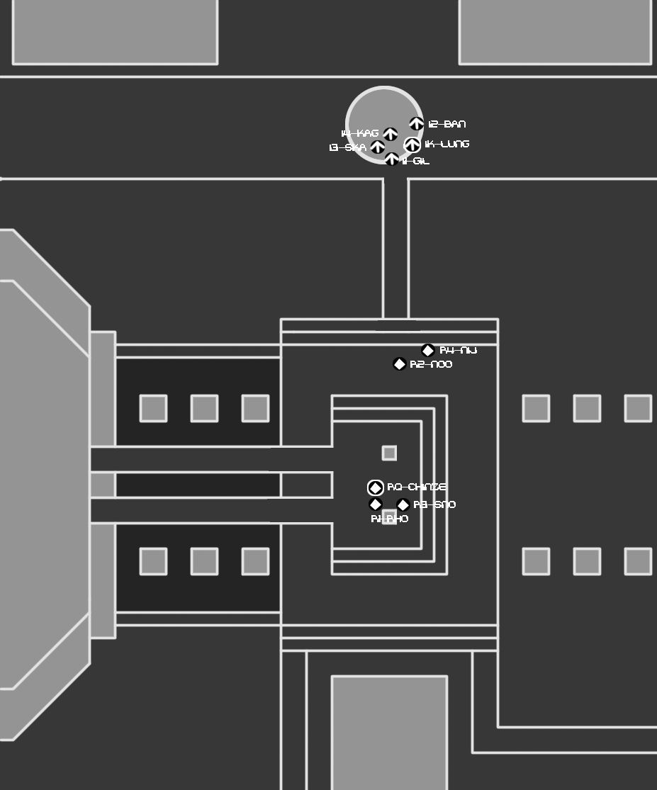 The Muffy97 memorial menagerie takes us through pedestrian streets. This is also not very ideal. There would be more room for cover in alleyways, around corners, possibly in buildings, but we'd be endangering our citizenry by taking a route through pedestrian areas. The only other negative I can think of is that our melee equipped threats may have an easier time with this route than we want. The available cover isn't as effective against a foe charging into you.