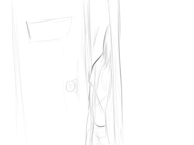 She opens the door. The inside is pitch black, and in the dim light, you can see broken glass.