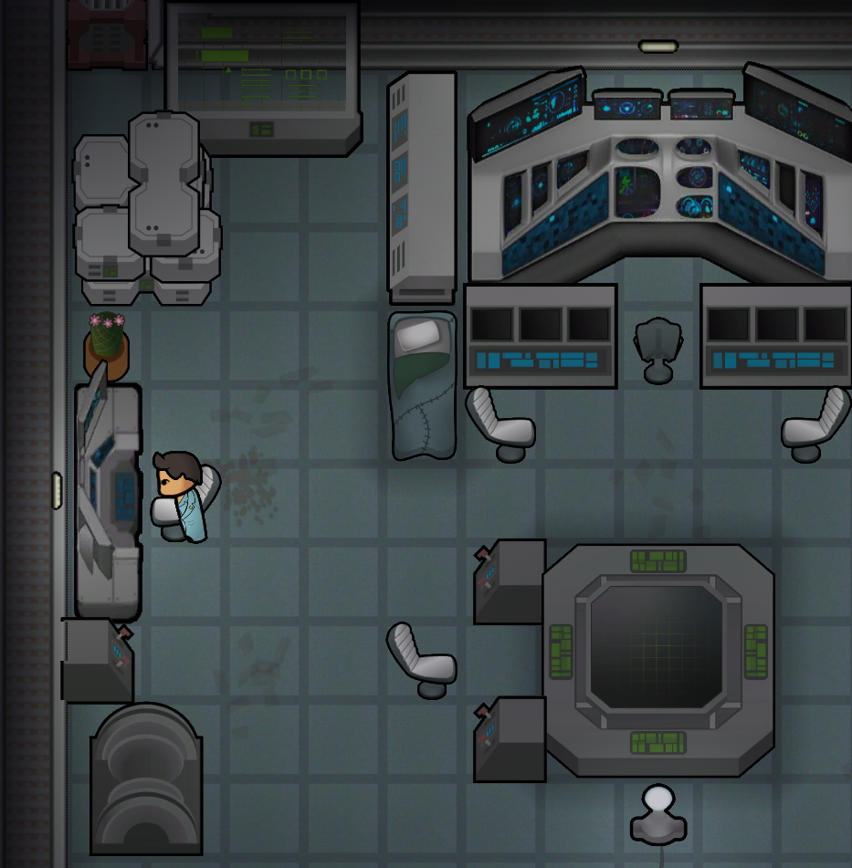 You decide your first goal should be to make sure the Merc is out of commission for good. Maybe if you hurry you can knock out two goals with one stone- but a check on your belt informs that would be quite a tight squeeze. You have a little bit more than an hour of atmospheric protection left, and while you might be able to cross from the front of the ship to the rear in an hour, that counts on encountering zero hazards or anything else that’d eat your time. Which is probably unlikely. And, you would still need to get the Merc’s body to a surgeon for the installation of the Chief Engineer’s stack before he wakes, which is probably impossible.