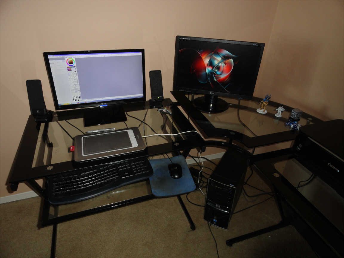 Well since I already posted my kickass gaming rig HERE IS MY COMPUTER WORKSTATION WHICH IS ROUGHLY ADJACENT (the gaming rig is to my left as I type this).