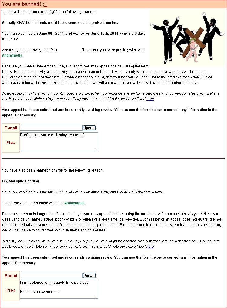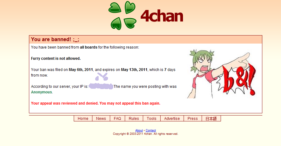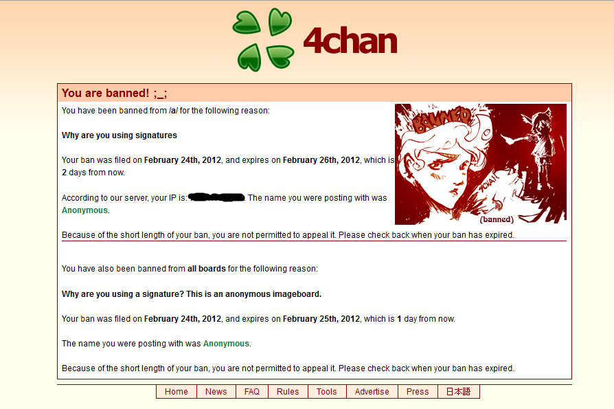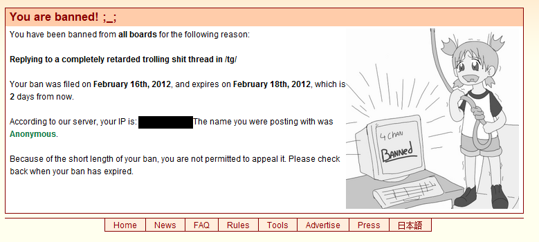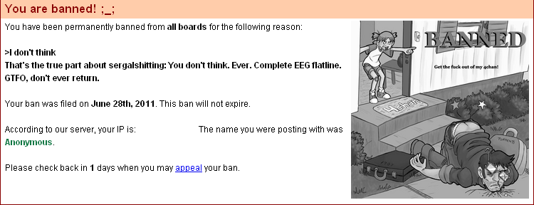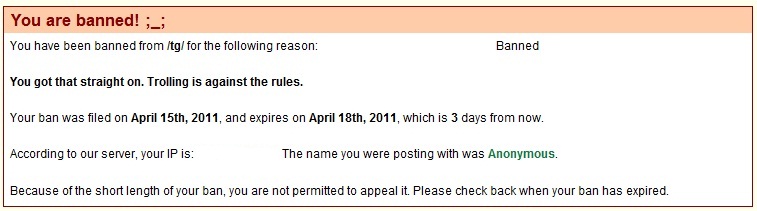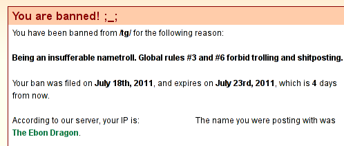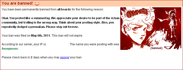 >4. If your post is a trolling shitpost, you may find yourself treated to a special summerfag ban. Generally one week global, it's more an encouragement to do better next time.