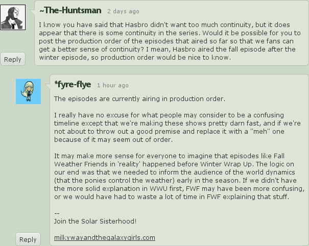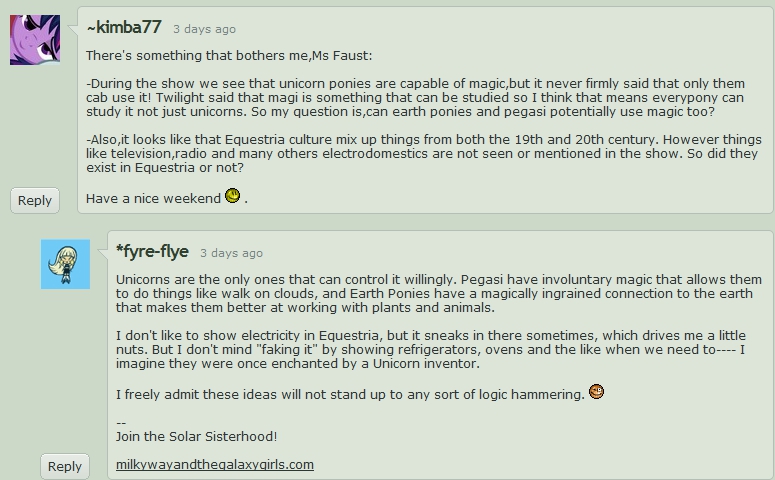 I have a generally positive opinion of the changes that the staff has made post - Faust. The two changes that are positive is the existence of ponies before celestia, and the addition of a power grid to the cities of Equestria.