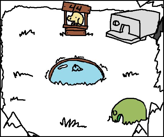 this is the first area that the players are going to be introduced into. The selectable areas here are the cutebold44 stand, the Butterflinger's Bargains, Muddy Pond and Your Shack.
