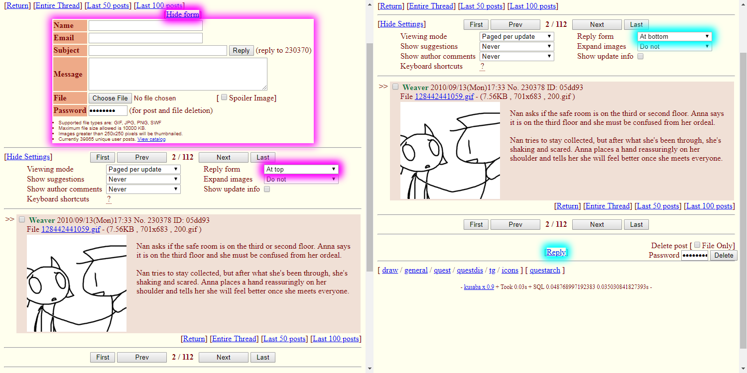 You mean, when opening any thread in the /quest/ board, that stored position should be ignored, and instead always start at the last update?