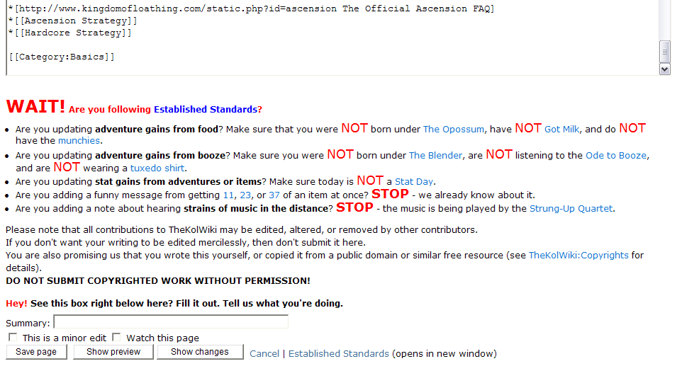 In any event, I disagree with the idea of smashing all the races down onto a single page. I would consider it horrible to lose an article like the Lohrke article ( http://www.tgchan.org/wiki/Lohrke ) because it had to be trimmed down to fit a one-paragraph blurb on a massive wall of text.