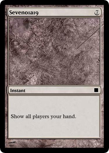 A seven-blue cost 7/7 with a sacrifice to do some strange thing that doesn't itself win the game or obviously make you closer to winning. What an awful card. It doesn't even have flying and it makes you show other players your hand when you play it. I'll be using this one as kindling when I go camping.