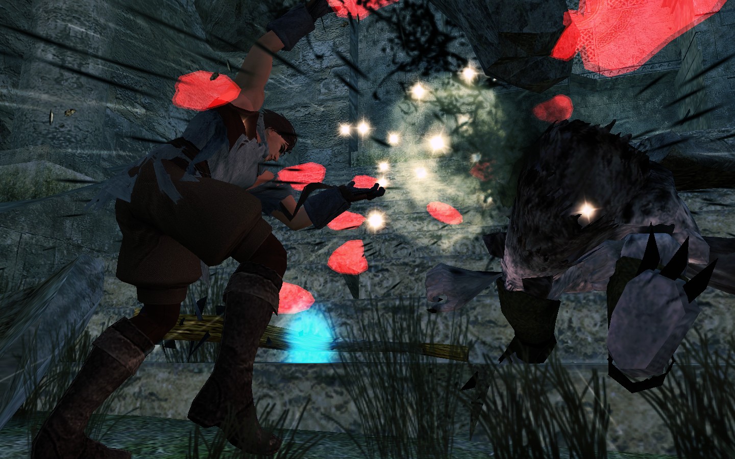 Of note: in this finishing blow shot, I'm actually inside the fire.