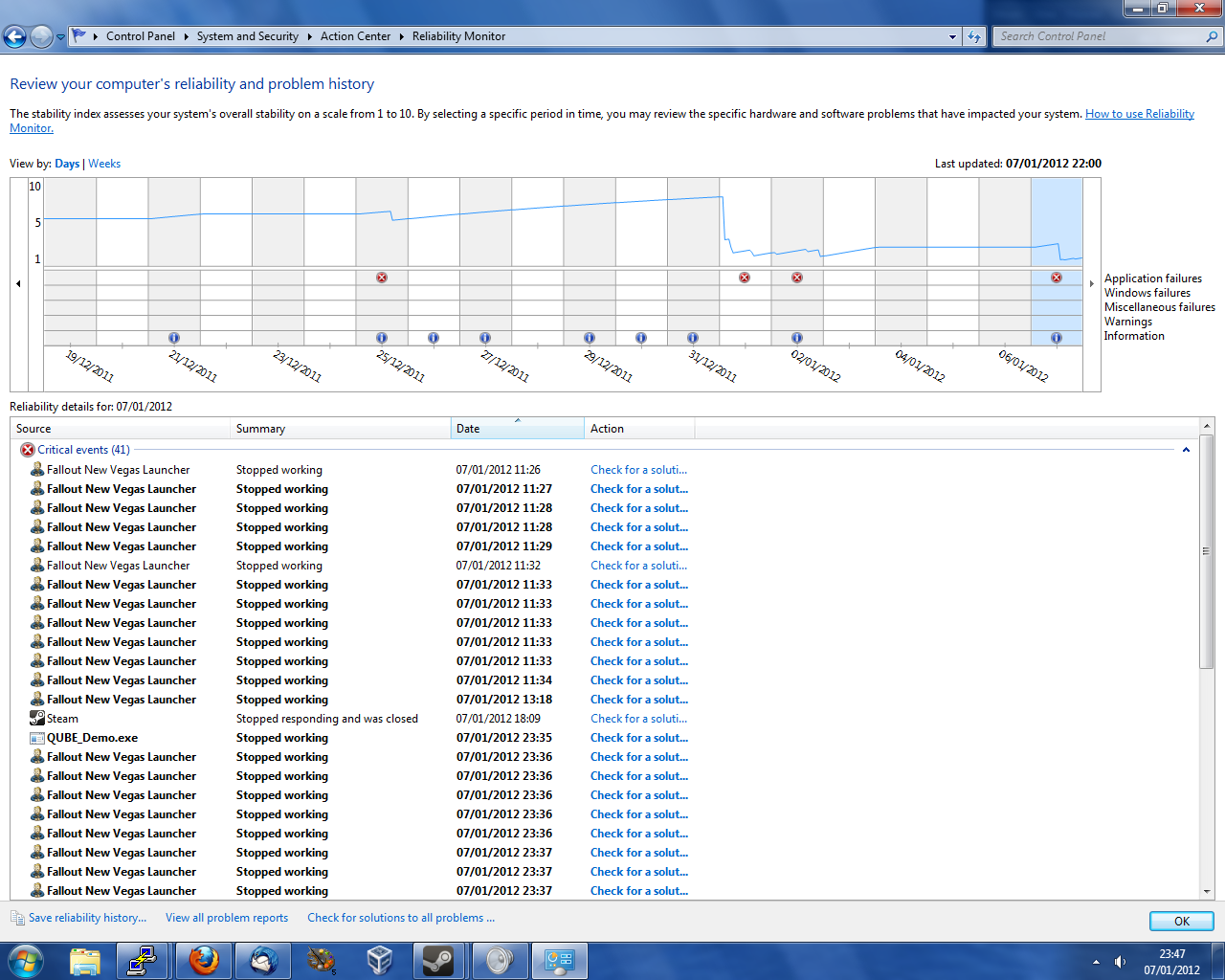 You see that plummet? That's when someone bought me Fallout: New Vegas, that is. The irony is that the game itself is mostly stable so far. If you can ever get it to start.