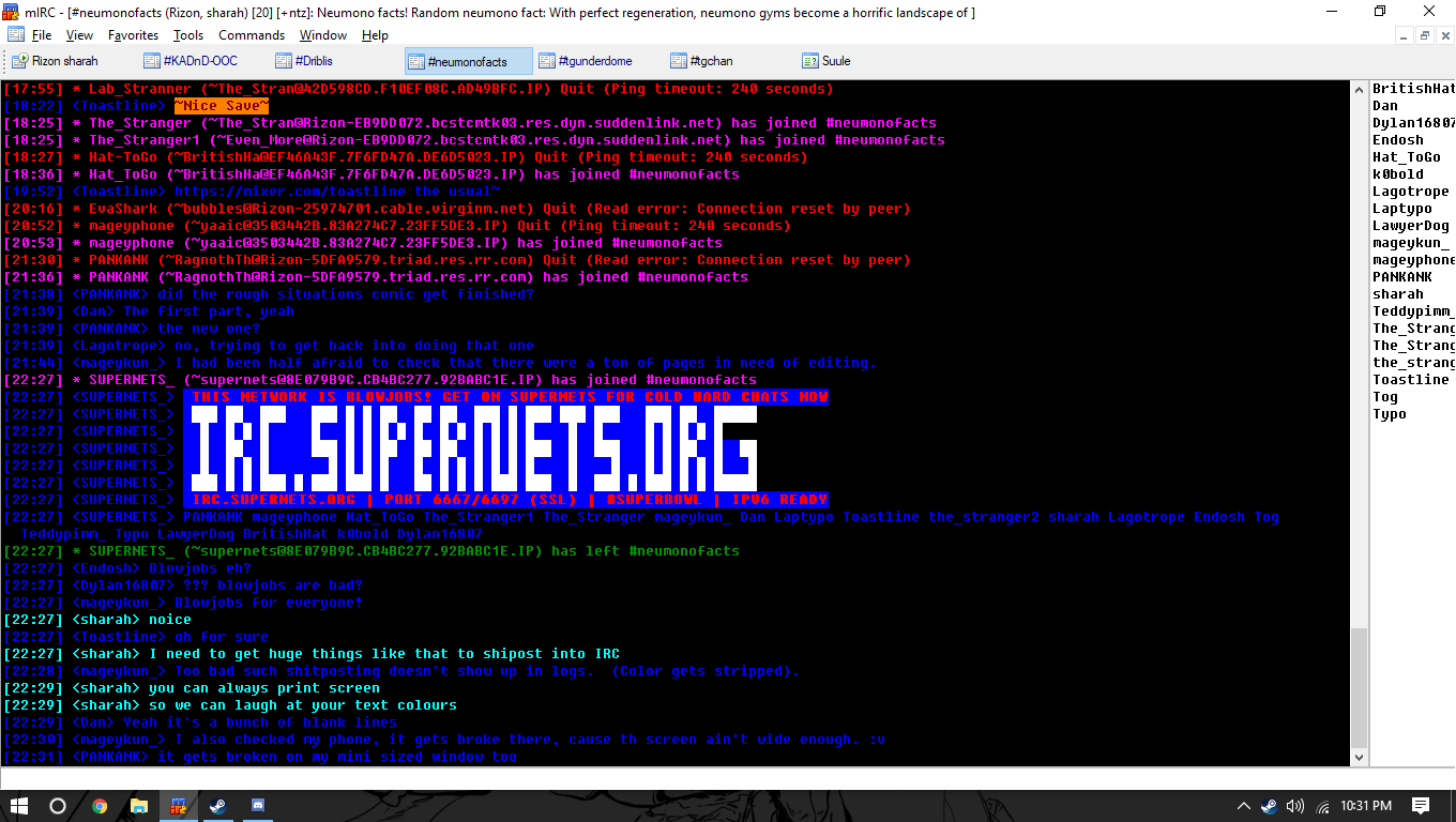 [04:01] <sharah> dasaki: http://images.4chan.org/v/src/1310459104475.jpg [04:02] <%Dasaki> :| [04:02] <%Dasaki> I fucking hate how the satellite company cycles IPs [04:02] <%Dasaki> You have been banned from all boards for the following reason: [04:02] <%Dasaki> Replying to CP/Jailbait [04:02] <%Dasaki> Your ban was filed on July 9th, 2011, and expires on July 23rd, 2011, which is 11 days from now. [04:03] <%Dasaki> I DON'T EVEN USE 4CHAN [04:04] <sharah> FFS