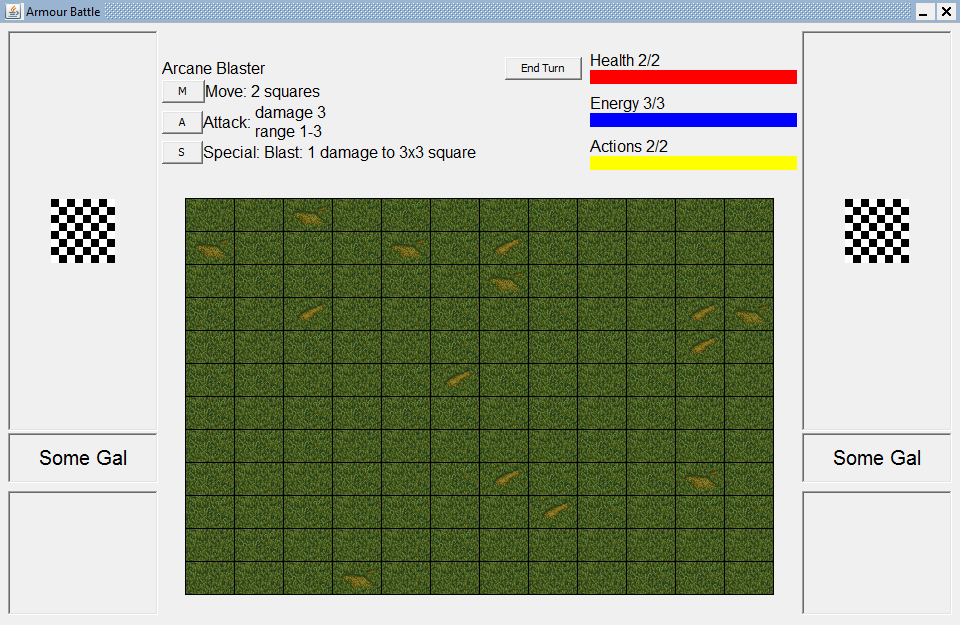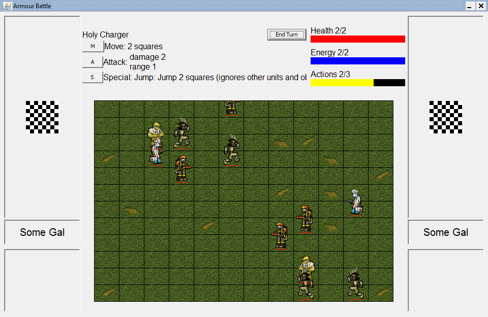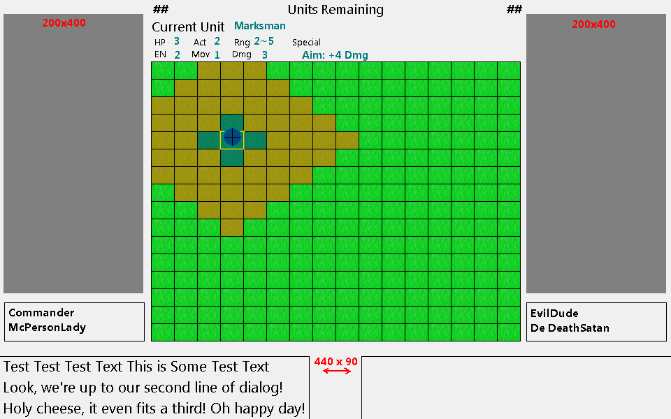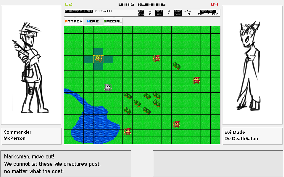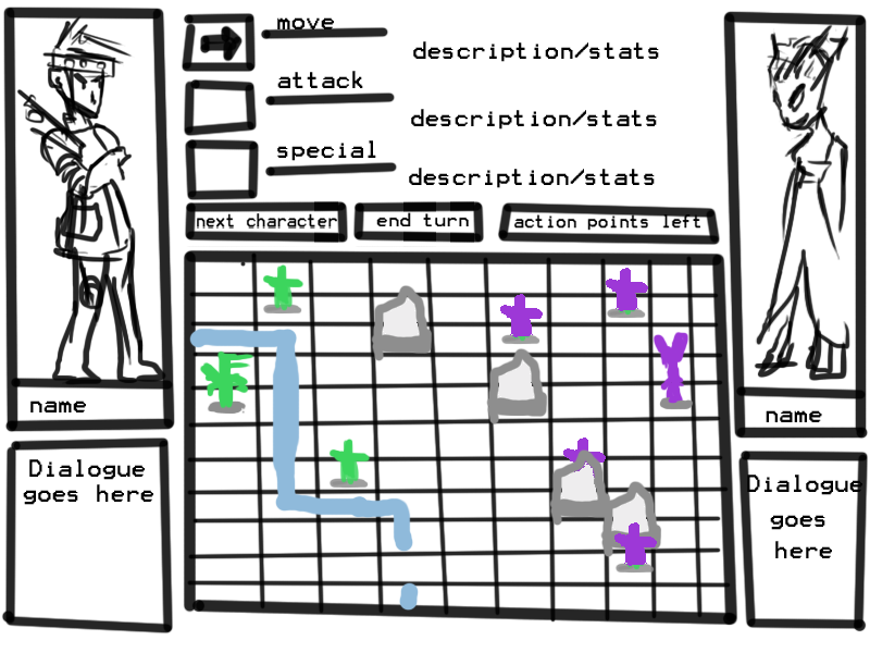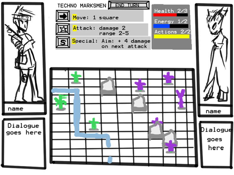 Also, I didn't know if you were going for Player Turn/Enemy Turn or Inititaves, so you'd probably have something that show's a person's turn or what the current turn order is.