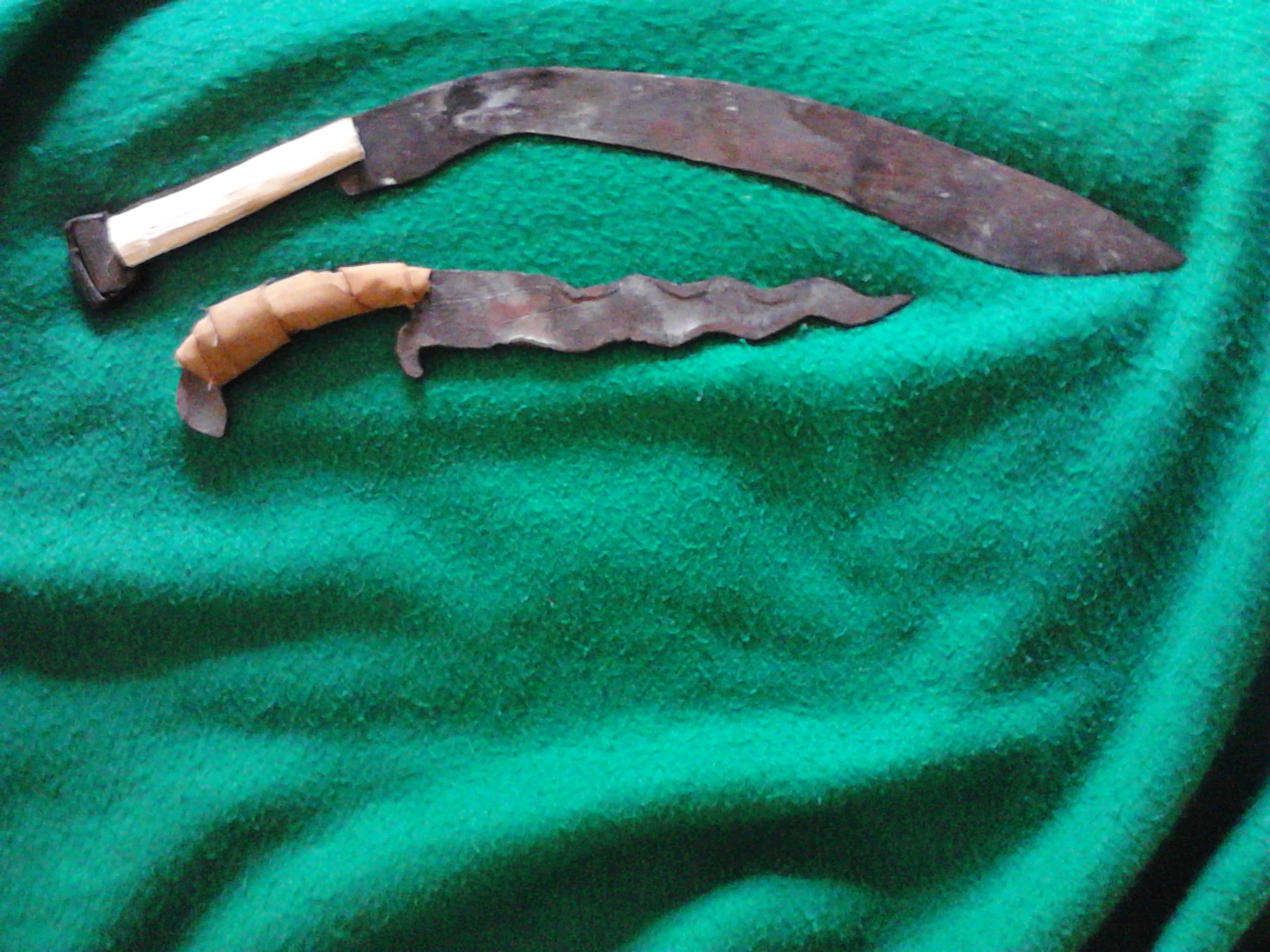 the kukri is too much of a banana to live, I'll probably reshape in something else and use a wider metal sheet for it next time