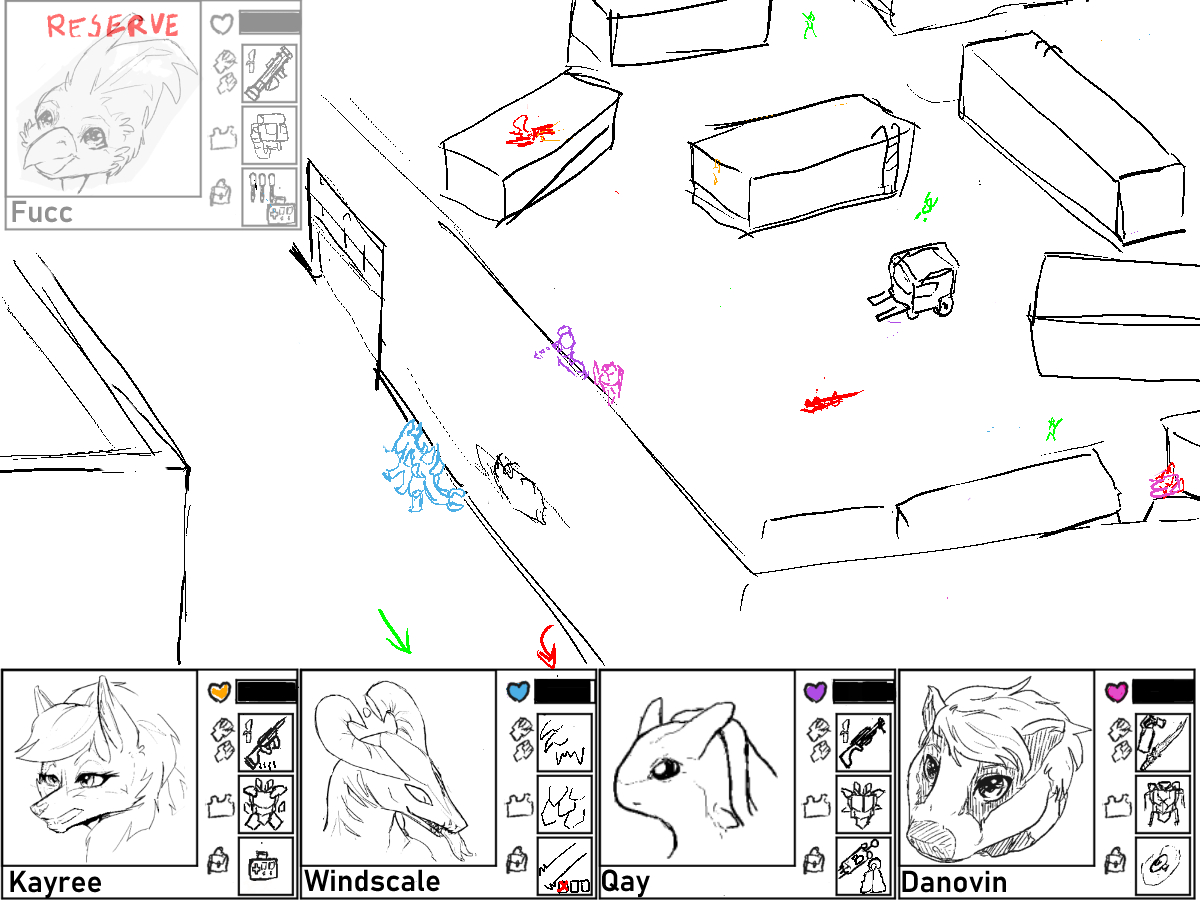 The barrier around the reserve can be seen through but can't be damaged. Several large shipping containers are visible, along with several Cult soldiers and a Cyber Bear. A troop crouching behind a hedge seems to have some kind of large radio device on its back. A proper machine gun is set up in the ticket booth.