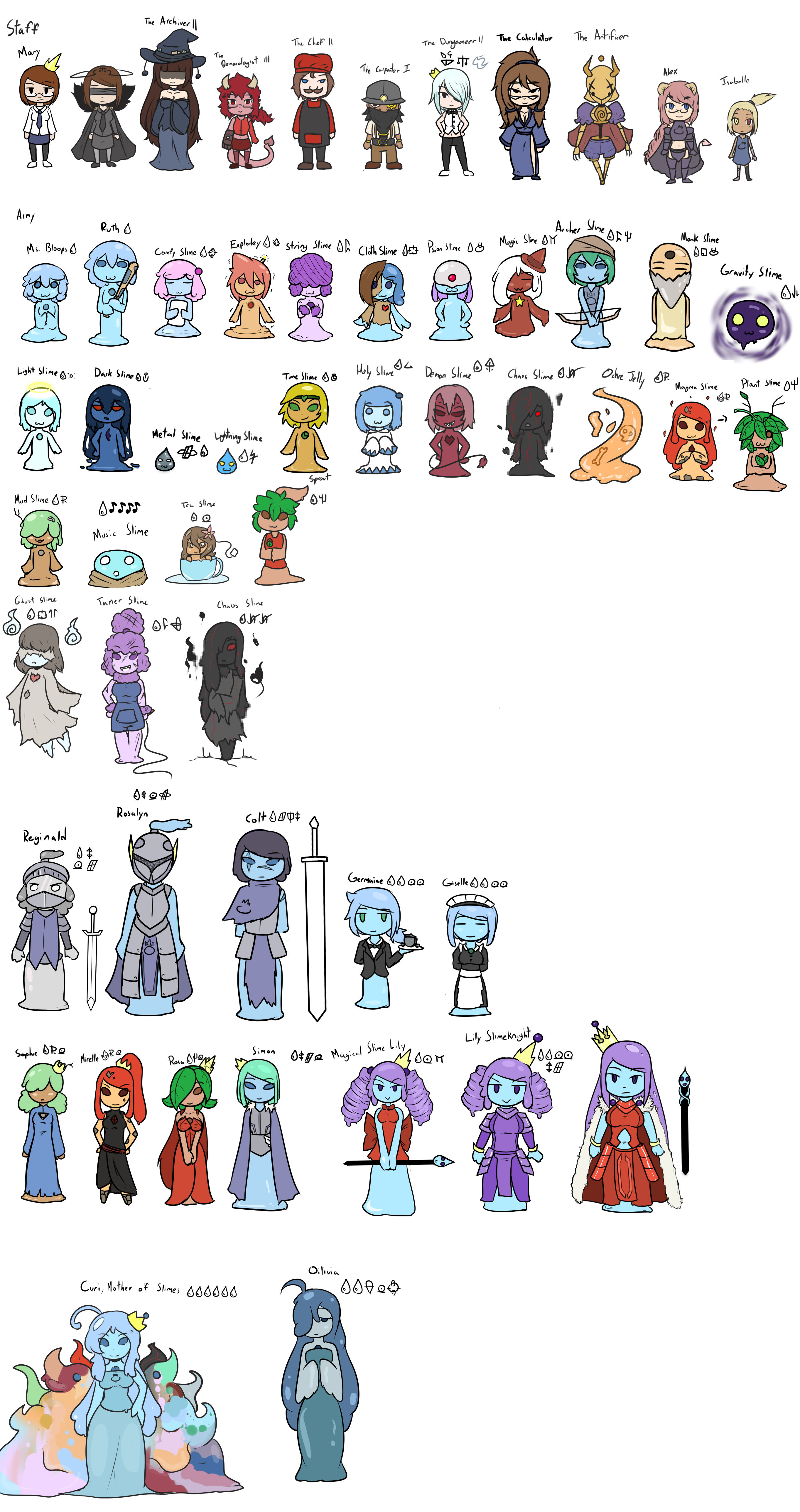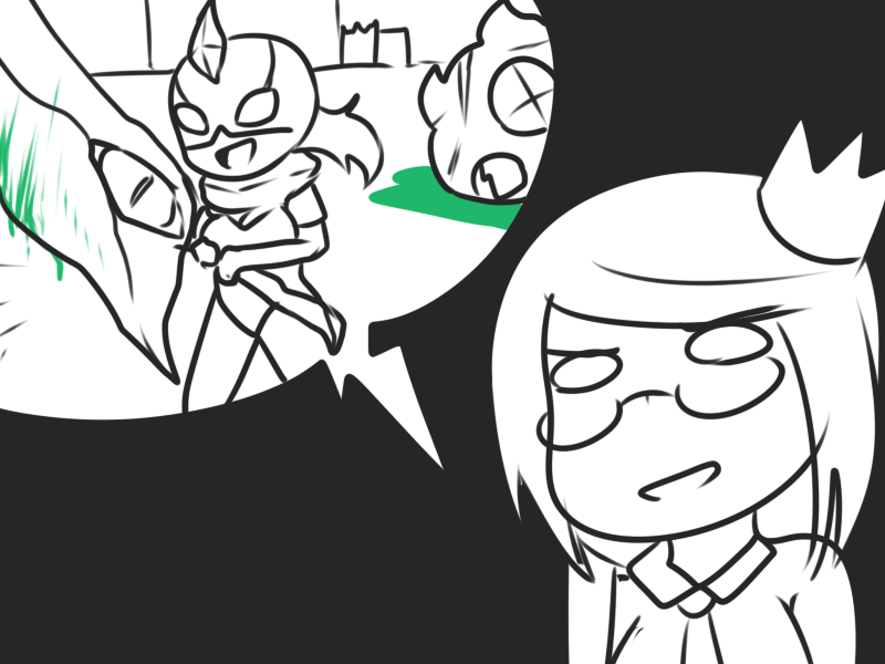 >Curi is practicing her “meet the parents” speeches (which no one admits to knowing about), drafting the dinner plans, thinking of new games, and has deployed her own powers to bolstering the seal. She isn’t to be interrupted on penalty of death. If anyone enters the chamber, the boss fight begins with a couple strong slime types already summoned. Curi’s full selection is limited as she’s currently supporting the seal more than usual. Heavy is the crown.