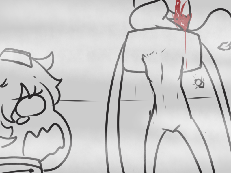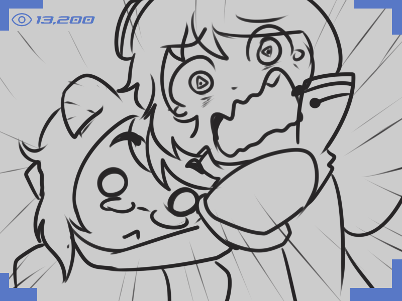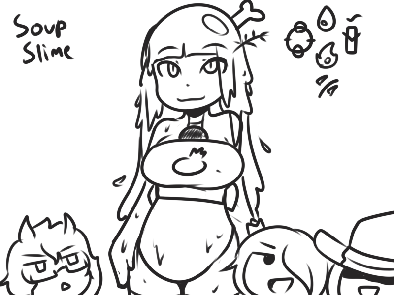 >Ms. Bloops does her usual thing. When finished, Metal Slime can zip in, pick up Ms. Bloops, and sit in view of the camera but running away whenever Arcane turns to see what they’re commenting on.