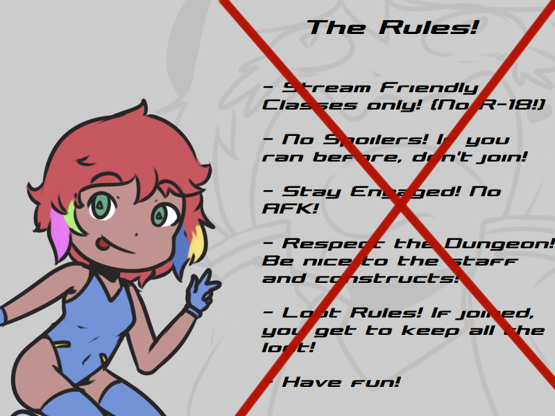 >SYTYCS now has three difficulties in preparation of the visit. Even inspection teams need to relax, and we want to cater to all levels! The adventurer is asked to test all three out, as well as one longer session that mixes all three difficulties. If they try all four, they get a reward. No pass/fail from actual dancing competence. If they attack anything, gravity slimes pour in.