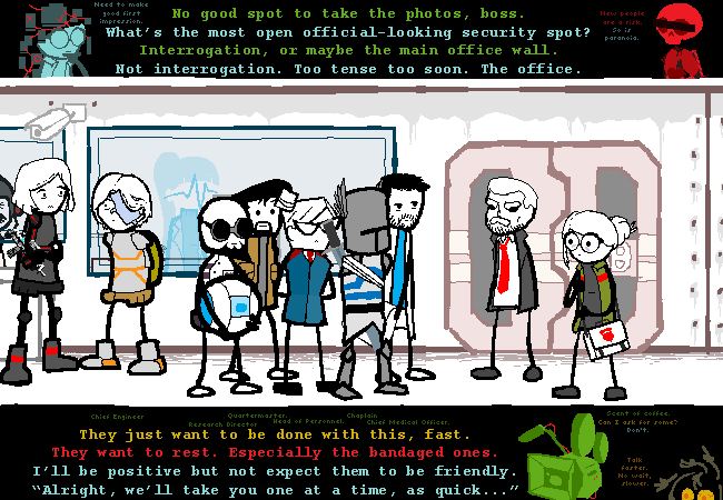 But everyone was promised a future of dazzling self-improvement and enhancement. People, human and otherwise, were promised that one day there would be excellent robot eyes, eternal youth, and powerful extending wrists for all. When that wasn't delivered, that was fine for most, since they could settle for what they had. But some had never been hoping for excellent robot eyes. Implicit in the promise of conventional enhancement was a promise of a chance at unconventional recreation. Certain people had been implicitly told they would have the chance to bristle with new arms and eyes and chemicals, or walk bare into space and stare into the wider spectrums of distant suns, or to sing impossible notes in new and unspeakable songs, or just to change how they looked to something better and break the boundaries of misunderstanding. For complex cultural reasons, cat ears and unusual hair colors are a statistically significant part of some interests.