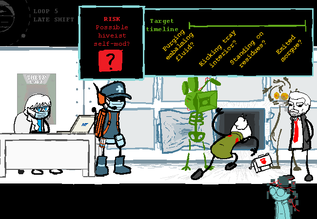 The promise of exceeding humanity contained a promise of changing humanity. Hiveists use, or at least strongly support, extremely unconventional and generally banned body modification methods to create, in whole or in part, idealized selves that are meant to explore space beyond species and join an idealized "hive". This subsequently disrupts the social order that denied them even more of this freedom, an intentional result sometimes made more intentional by extremists. They were given this promise that society would give them these things in exchange for the rights to the body, and then they were denied their end of it. This makes them feel justified in destroying not just their internal boundaries, but various space stations throughout the frontier sector. Many Hiveists are known to work for the Syndicate, putting the ideology in direct opposition to the Company.