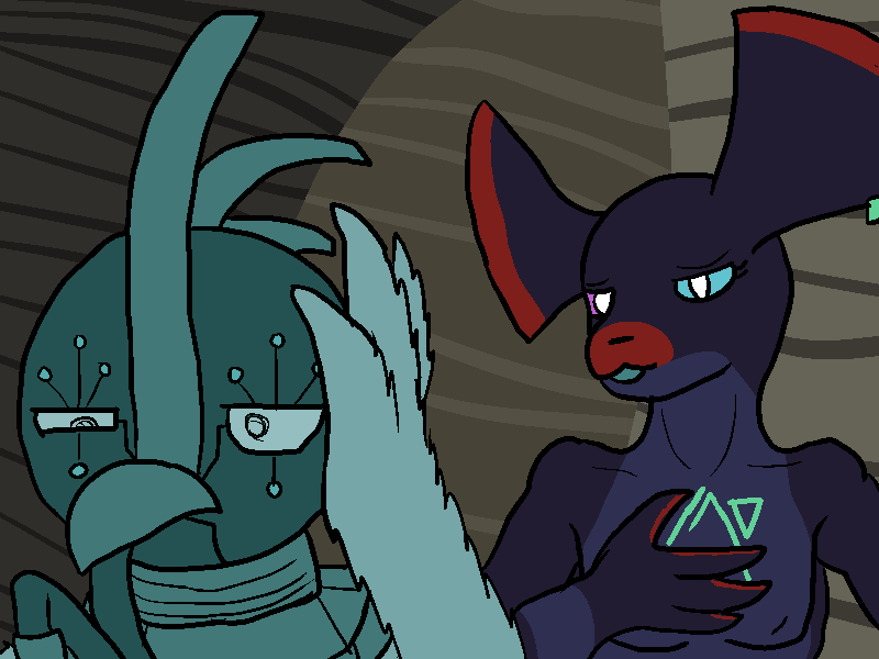 I hold out my winghand. Conduit stands up, walks over, and takes it. A stream of information passes through my digital representation, too much for me to pick out individual elements, but all of the mission details I feel comfortable sharing.
