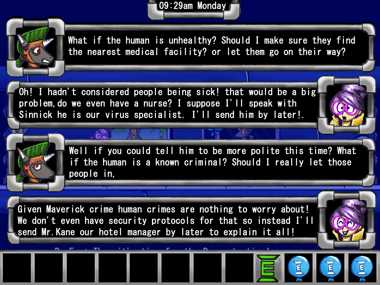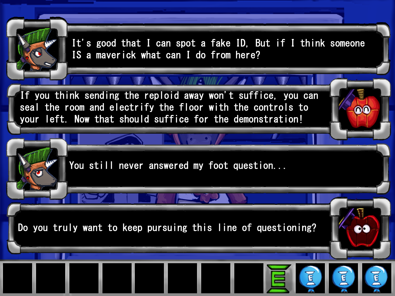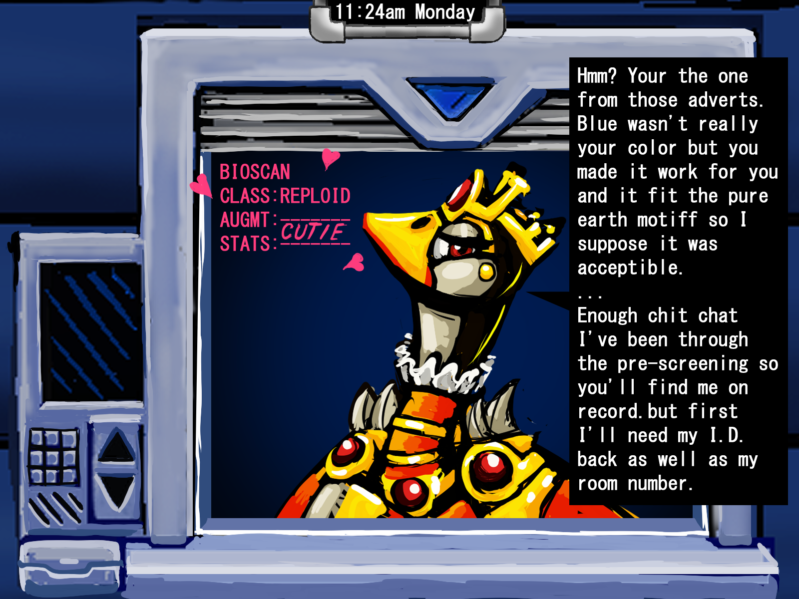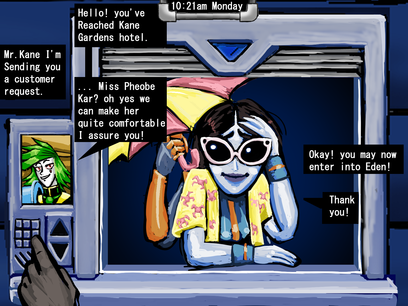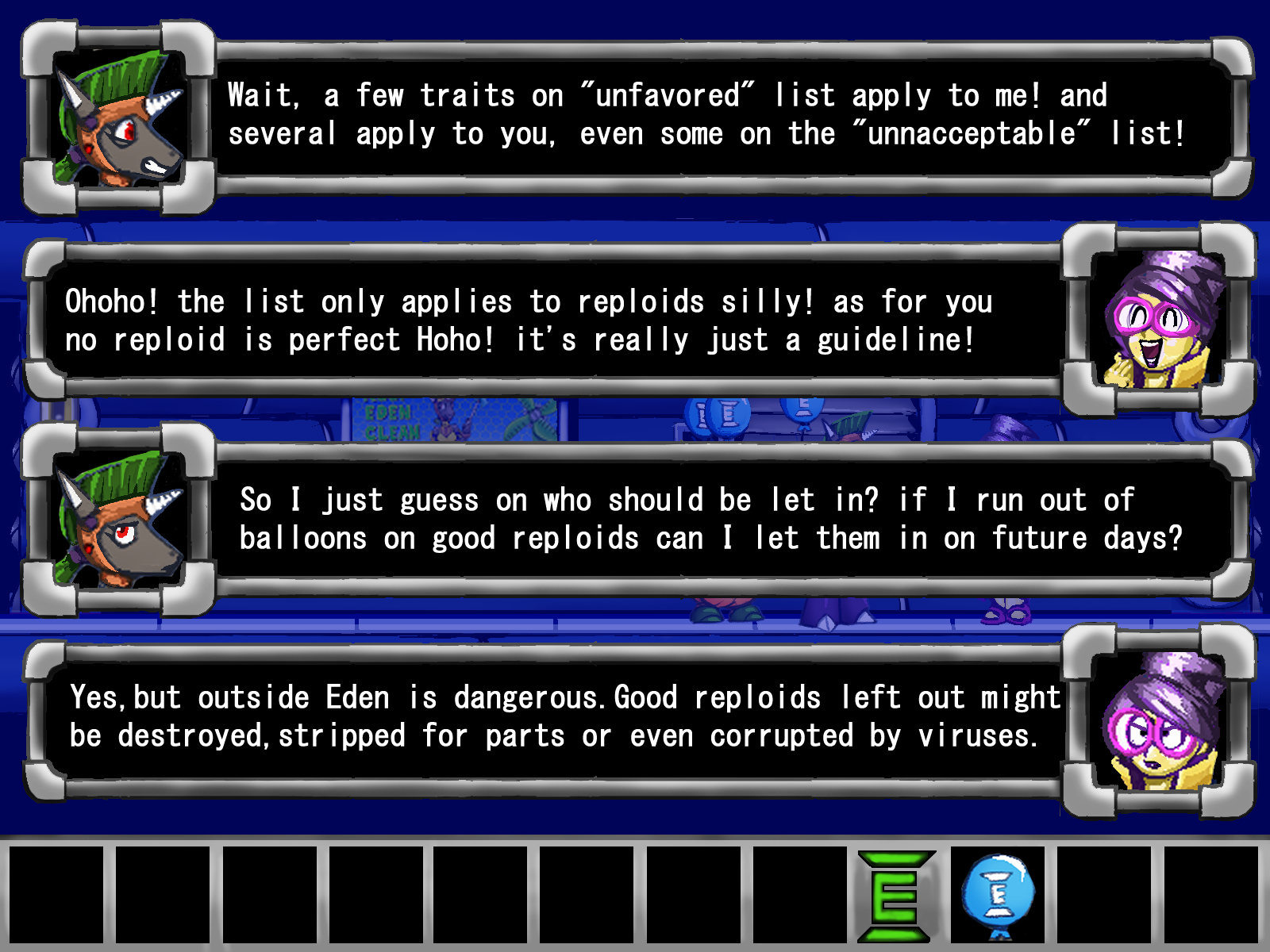 “Well I'm going in to fix the incinerator now,” she says “Keep on doing a great job keeping Eden safe!” She winks at the new head as the guardians all say “Party on!” Chemical Formixer is happy that the new mechaniloid is working well with his peers!