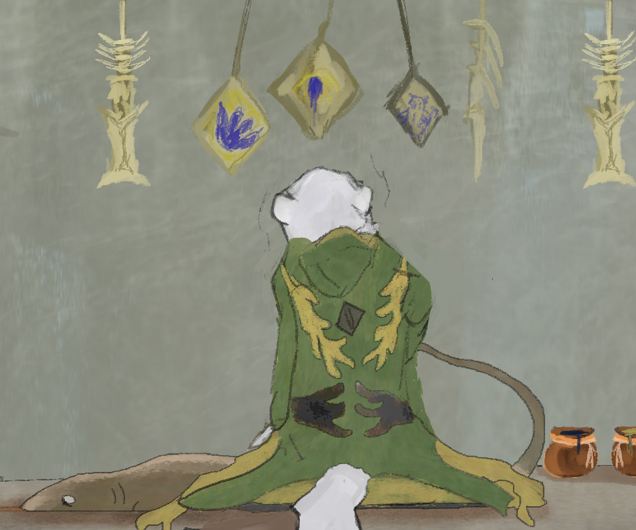 "The spirits grow restless as the iascull trees renew. Lea's power brought forth. They speak to me. They warn. The clicking things From the depths. I have seen. Do not go to that gilded