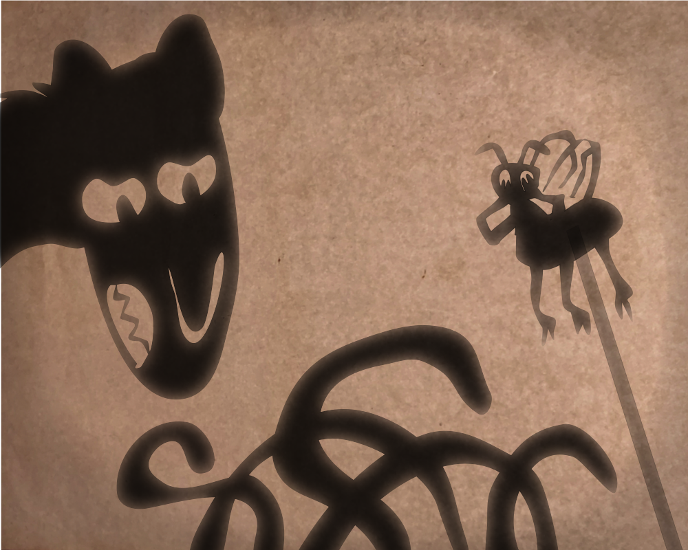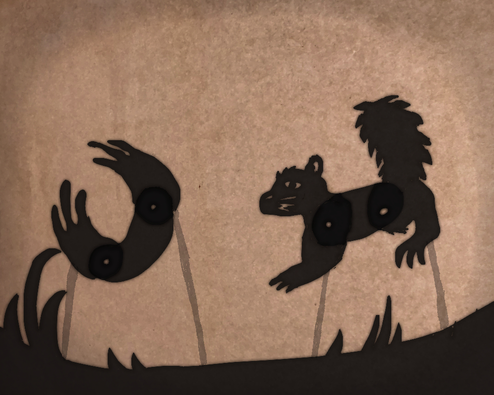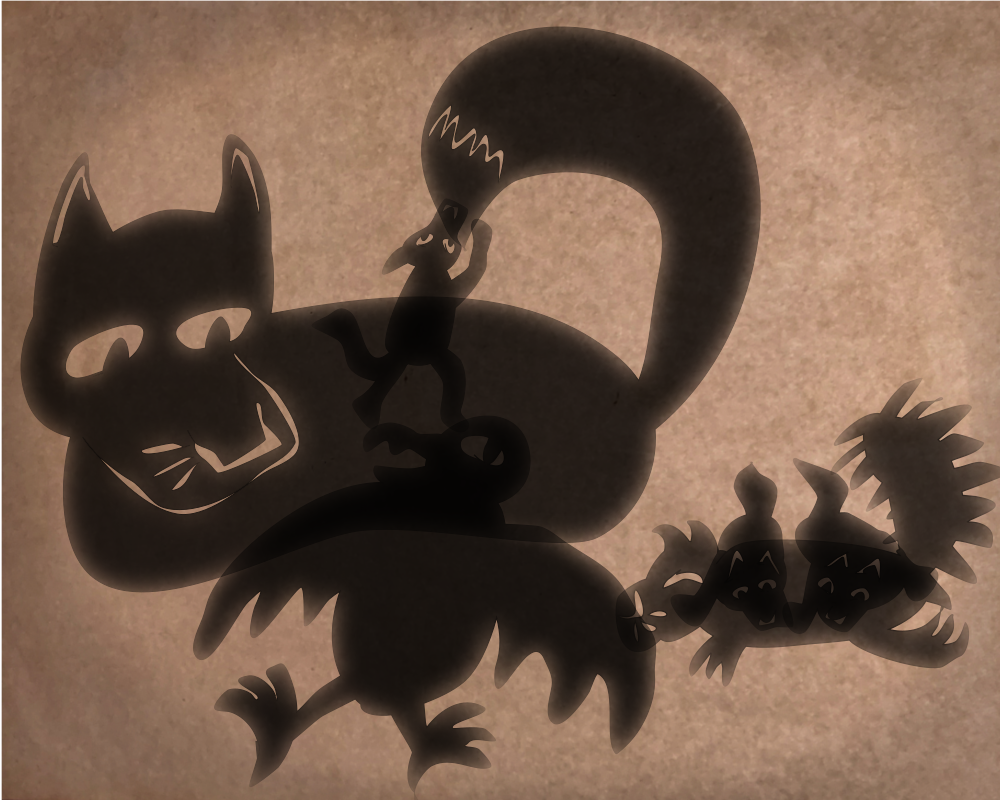 Spying a path through the undergrowth, the slime followed it until it spotted a creature. A small thing, smaller even than the slime, but with a big tail. The slime wondered what to do...