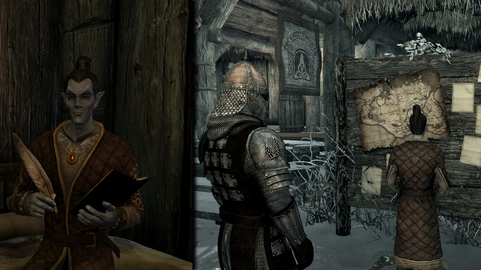 “Recover the lost heritage of Winterhold. Return Skyrim to the Nords. Join the Stormcloak Rebellion.” There are simple woodblock prints inspired by ancient geometric shapes found in Windhelm’s architecture. I just left Windhelm, and I had more loyatly to Skyrim than to the Empire.