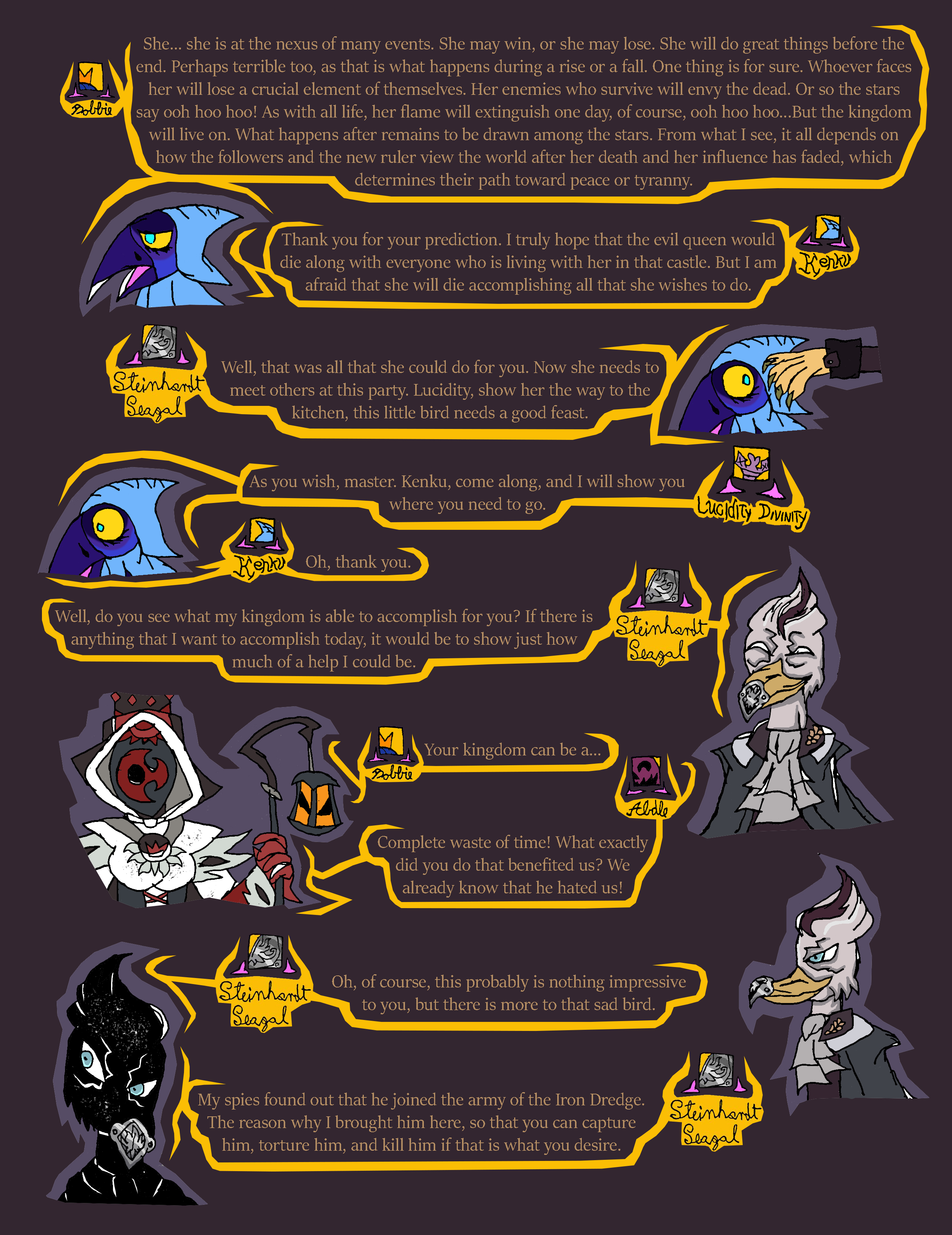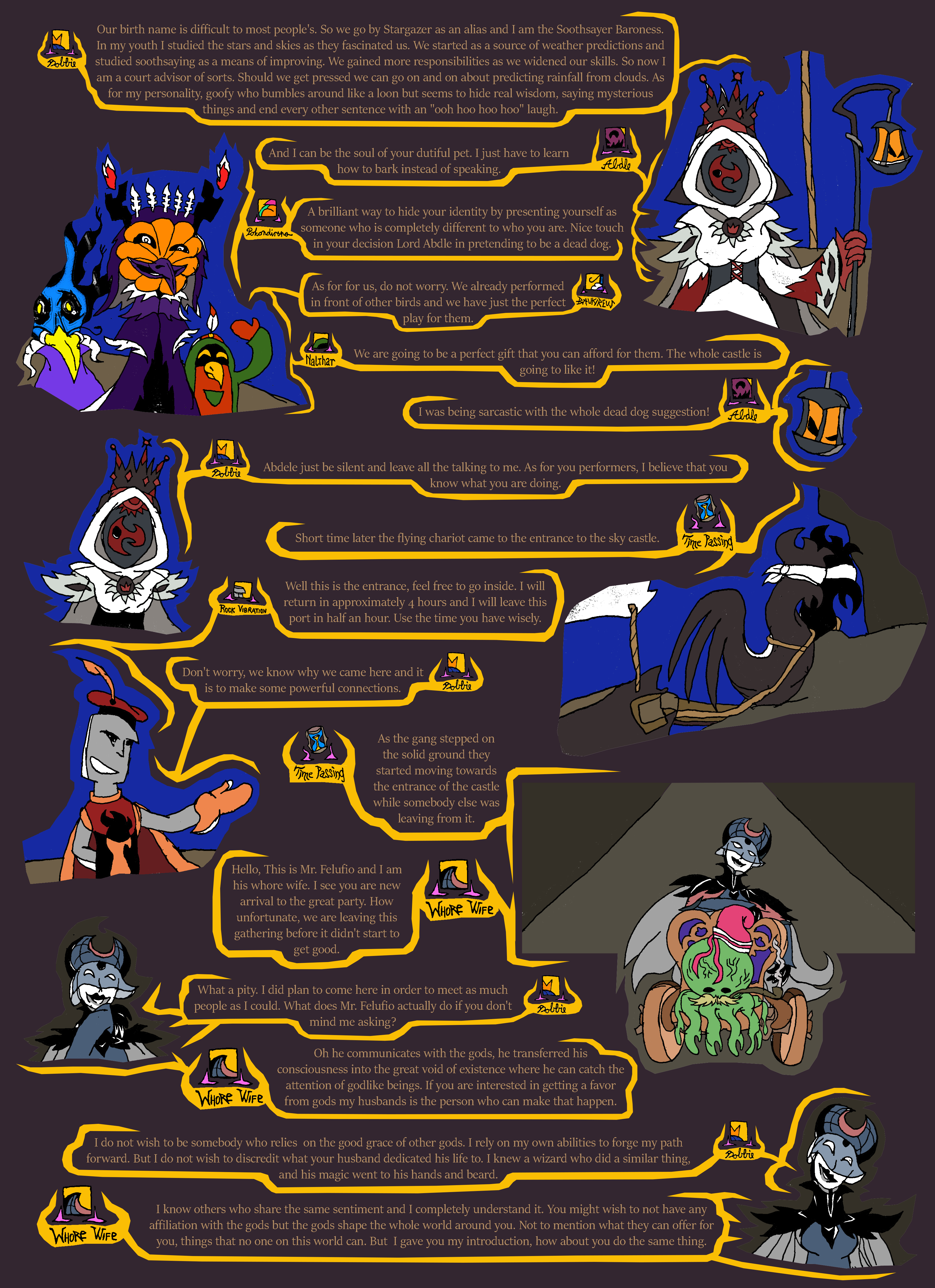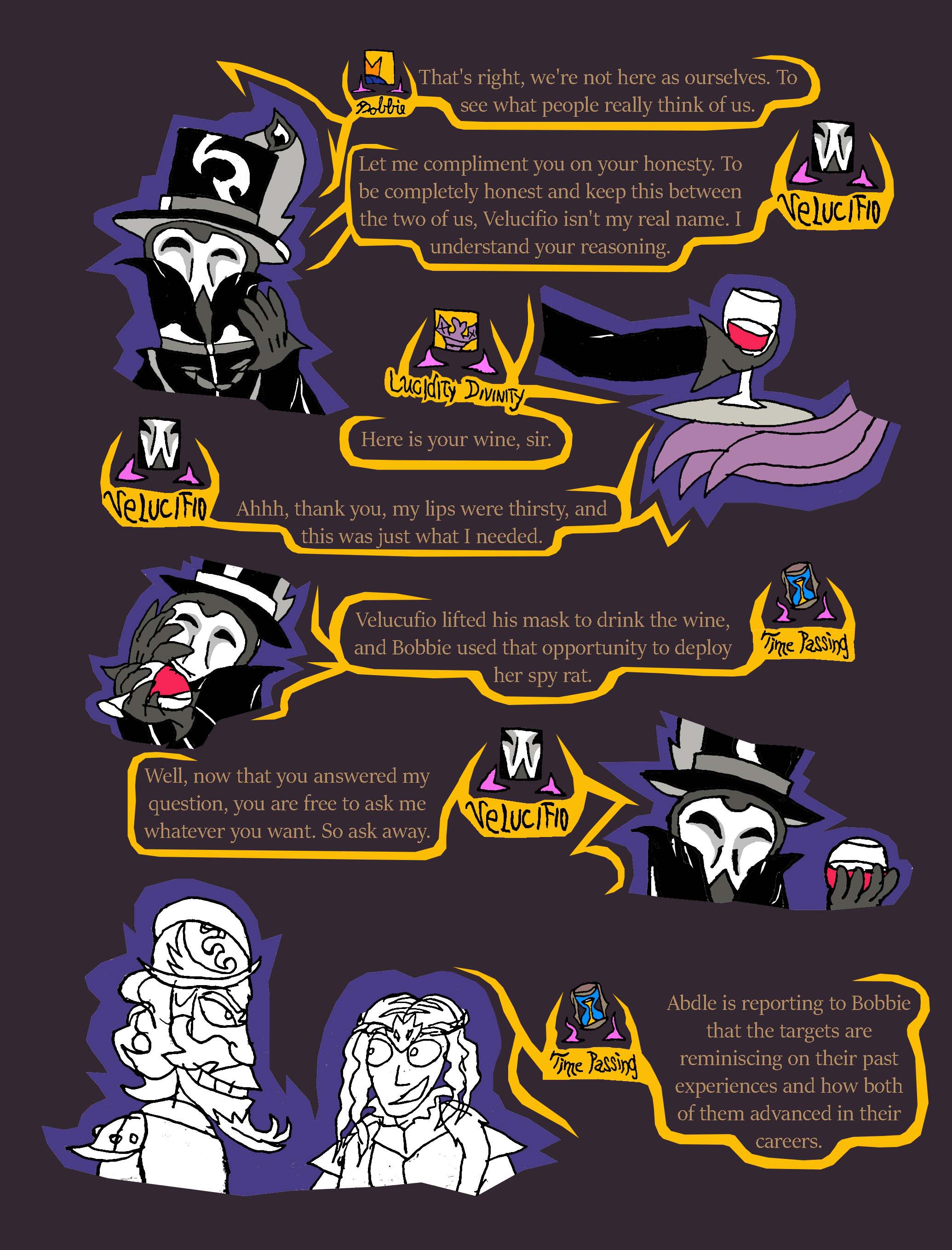 lastly, that was the second time today that spy rat got caught. We need to have a serious talk with Ratislav about training his rat spies, otherwise they could get caught and eaten. With that in mind, I think we shouldn't let spy rat back out right away until after Maya Din is done talking with us, and when the performance begins since that is starting soon. People will be distracted during that time to notice the rat.