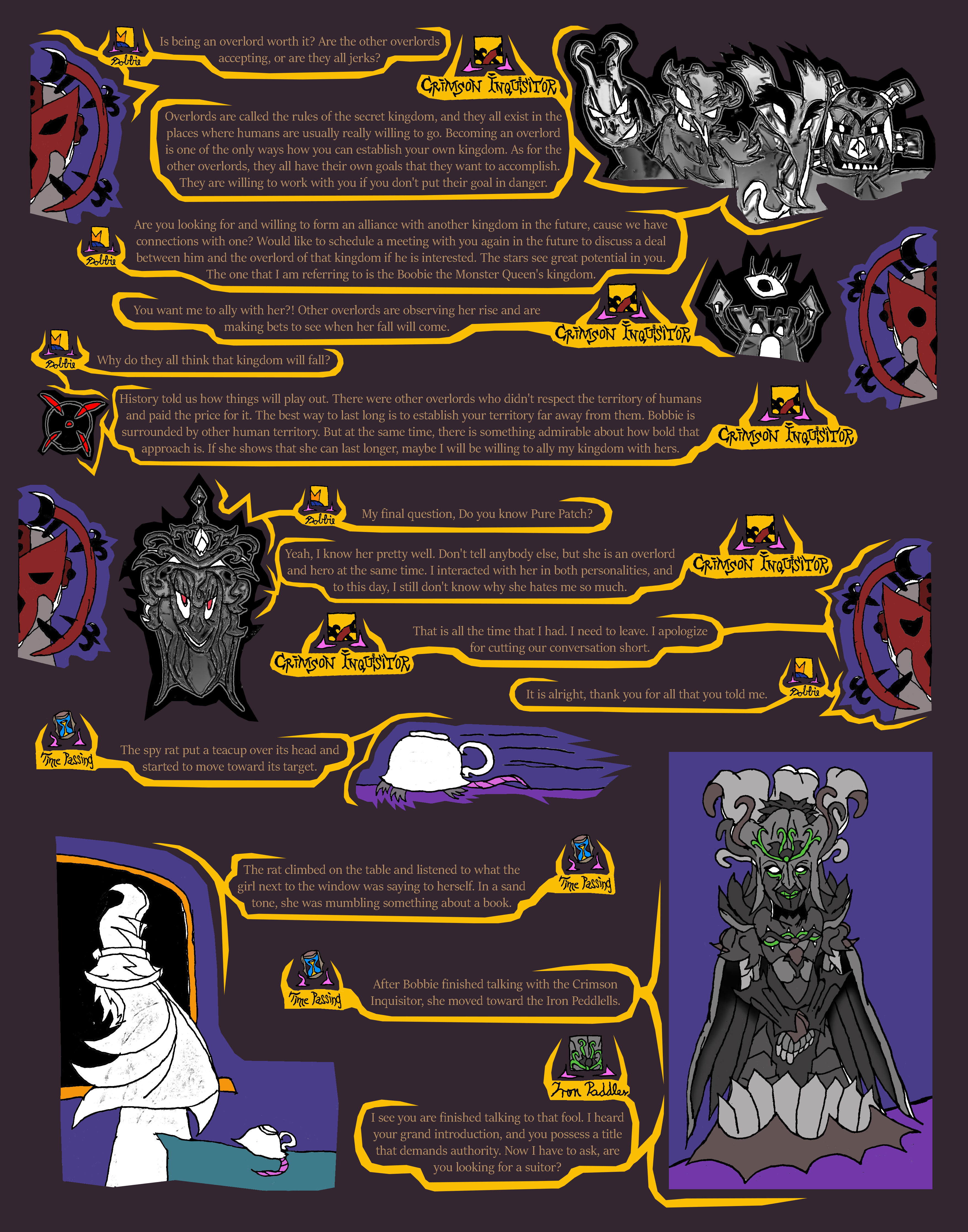 that overlord was talking to that woman in black armor about her grandson getting ready to ruler. She seems embarrassed about him and has some kind of plan.