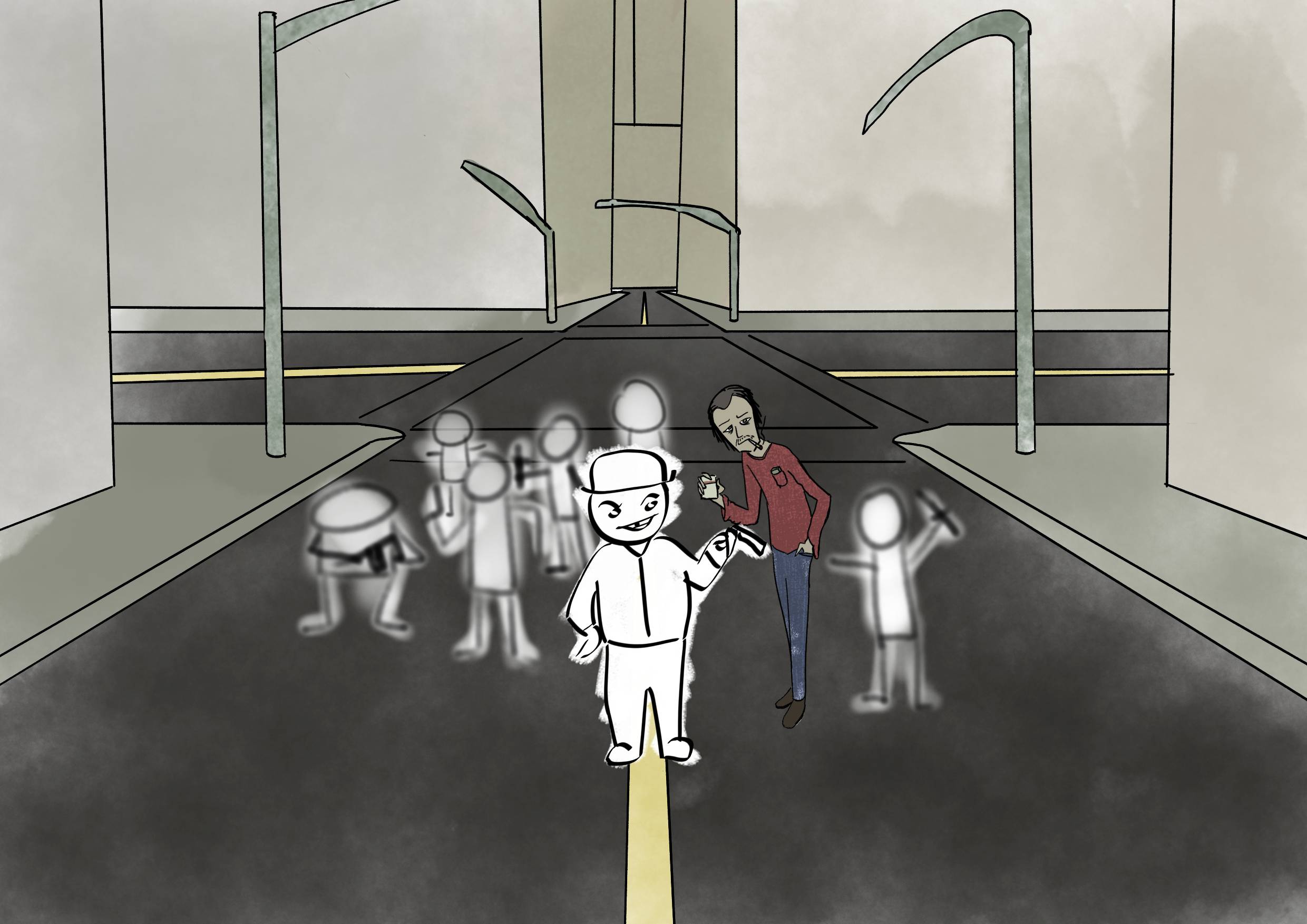 "That's the overview at least. Obviously, the characters don't have free will of their own, so we have to do a weird, ranked choice voting scheme to decide what the characters are most likely to do, but that's all implementation."