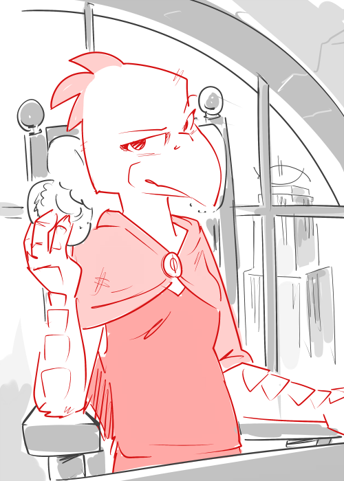 The dapper bird sighs and plucks at his vest anxiously. “It’s been… difficult. He doesn’t like being under a roof, so finding a space safe from prying eyes together has been, er, challenging. Fortunately, since he wasn’t included in the plot to steal the Aegis, he's fairly safe from their attention. I’ve asked him to keep tabs on court agents in the city from the sky.”