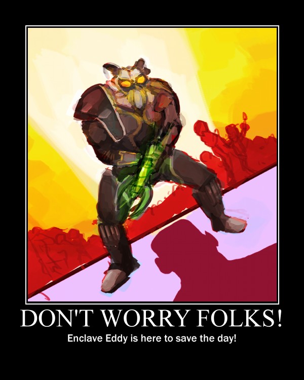 Hi TGchan, /tg/ here, my ass got banned for three days so we're shacking up here. Don't worry you won't notice us. We don't take up much in the way of space. >What the fuck? 4chan, in my tgchan? Why are you here fa/tg/uy? I'm here to run Pax Americana Quest for my TG bros! >What is that? So glad you ask take a look here: http://tgchan.org/kusaba/questdis/res/59450.html in the discussion thread. but lets get some basic information down. Pax Americana ask "what would've happened if the Enclave didn't decide to wipe out anyone who didn't meet theeir unrealistic standards of genetic purity? What would've happened if scientists, soldier, and politician rebelled against the president and destroyed the oil rig? What would've happened if they met the Brotherhood Outcasts (circa Fallout Tactics) and fused with them to become one big entity? What would've happened if this new american union decided to take back America from savagery and bigotry, in an attempt to rebuild the wastes on Old World Values?