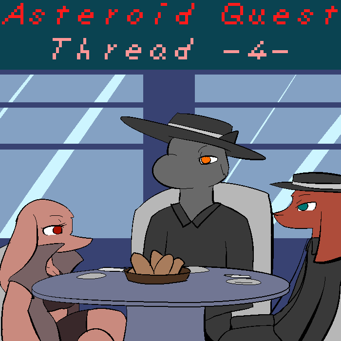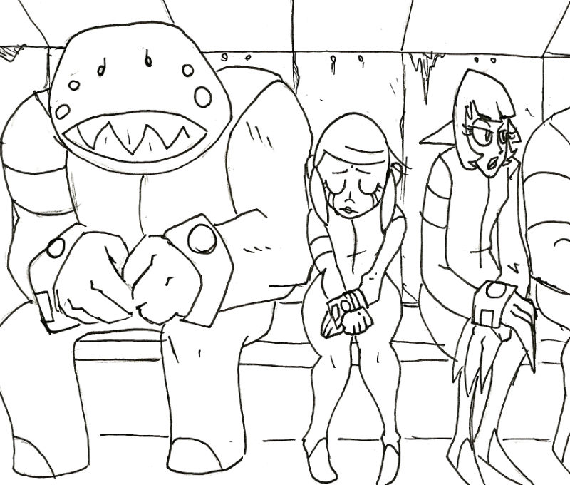 >((This quest is stat-driven, with dice rolls for most actions behind the scenes. For Chapter 1, and your current character sheet, consult http://quest.lv/kusaba/questarch/res/223628.html )) It was his first big assignment, and it was sprinting away from him down a dusty street on a dustier backwater planet called Faro 8. Halaris, crustacean Casanova and recruit of the Alliance's crack special operations unit, the ATRF, had come to Faro to evict its population of unfriendly pirates. He took with him the fiery (metaphorically and literally) Delter engineer Talia and the pragmatic human Sergeant Anka Pribicevic. Negotiations appeared to be going well right up until a runner for the pirates bolted out of the council hall, off to his heavily fortified HQ. The diplomatic mission was about to get a little more complicated.