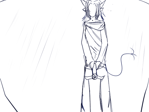Artemis groans and opens his eyes. His entire body aches all over, especially his left arm. He turns over to his good arm and looks around. The first thing he notices is that it's night already. The second thing he notices is a girl sitting in front of him holding his blade. "Rair myl jhoji si shadi ci shalaer..."