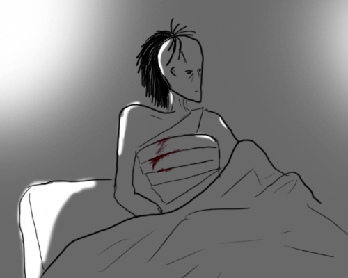 "In my home. You're lucky to be alive, that's a nasty wound you have there."