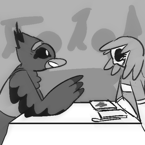 Your break has started and its the appointed time. You head up to the tower and land on the royal quarters. You’re led through a hallway and eventually to a side room. There’s tons of papers EVERYWHERE, the room is completely messy, but messy in the sense of you’re sure whoever lives here actually knows what they’re doing. In front of you is an older looking Hook. Her breasts are growing in, which you didn’t realize was a thing on bats. She smirks at you and invites you over. The two of you chat for a bit, she’s a lot more vulgar than you remember, but for some reason actually has a good opinion now. You assume it’s because of your MAGITECH prowess.