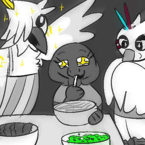 What follows is a blur, hook’s bad at teaching, like really bad, but you’re good at taking individual pieces,[UNDERSTANDING], using [LOGIC], and [TEACHING] to put it all together into a coherent skill set. You give her the figurine you had custom made to her at some point throughout this process and she’s in shock. She’s genuinely enamored with the gift at such a level she actually tries harder for you and begins to treat you better. You’re barely able to get the basics down before your time is up, which you’re relieved about. Turns out CYPHERS are kind of hard, but are used with diplomatic communications quite frequently. She doesn’t show you any advanced ones as they’re royal secrets, but does give you the basics on how to untangle ones you might find in the future. One night you have a conversation, having a few fried WINGIES as your dinner.