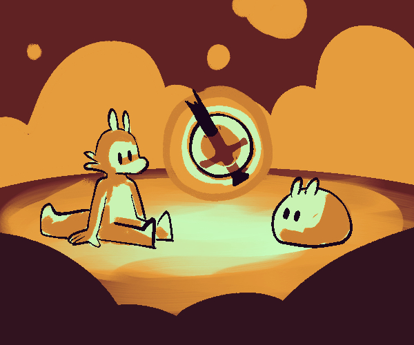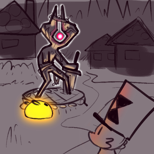 You get that their other part is worried, maybe super so. It used to be a Titan, didn't it? But the war's over, and things have calmed down, apparently a lot. You met some good people above, they were (mostly) nice, so it can't be all bad. There was a slime colony, too, and they were being left in peace.