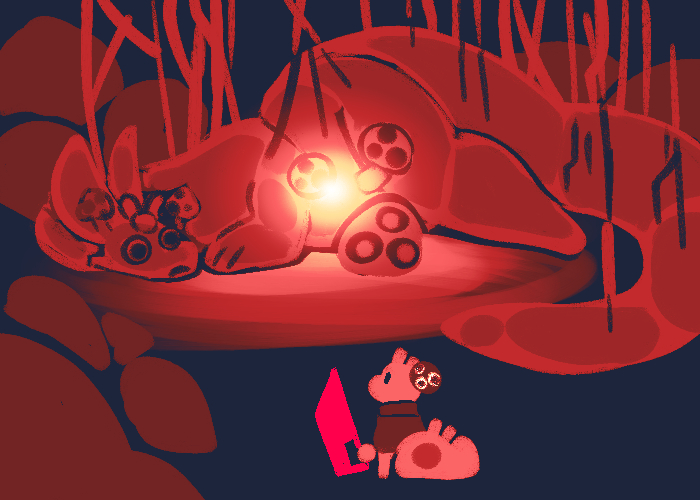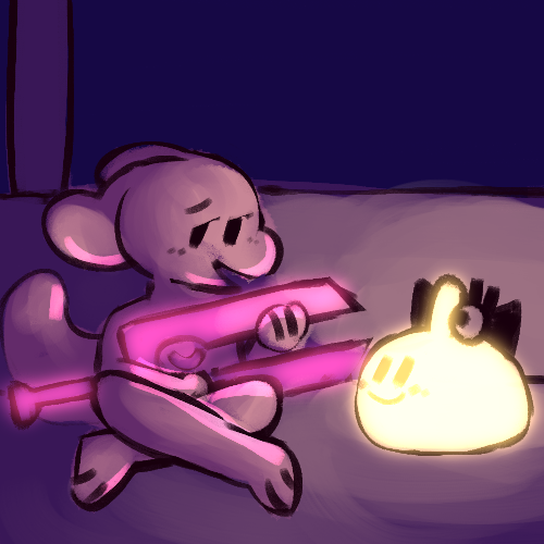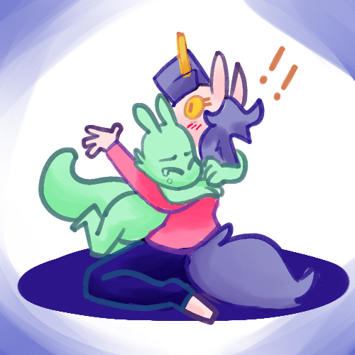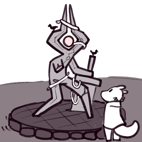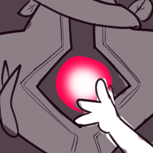 Gently put down Godkiller (Thanks for the escort, buddy! You'll take it from here.), discard your cloak (since, hey, bad memories) and wander up to give the the big ol' thing a gentle squish-hug as you bump your fine tail-part into their side, by their glowing heart.