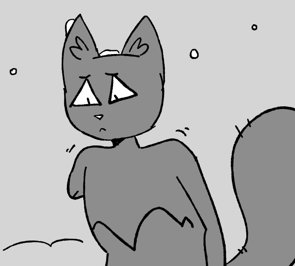 Body is sitting with the lean cat in the snow, patting her on the back while Kibble rocks back and forth. The zombie waves to you frantically and you use the last of your strength to fall at her feet.