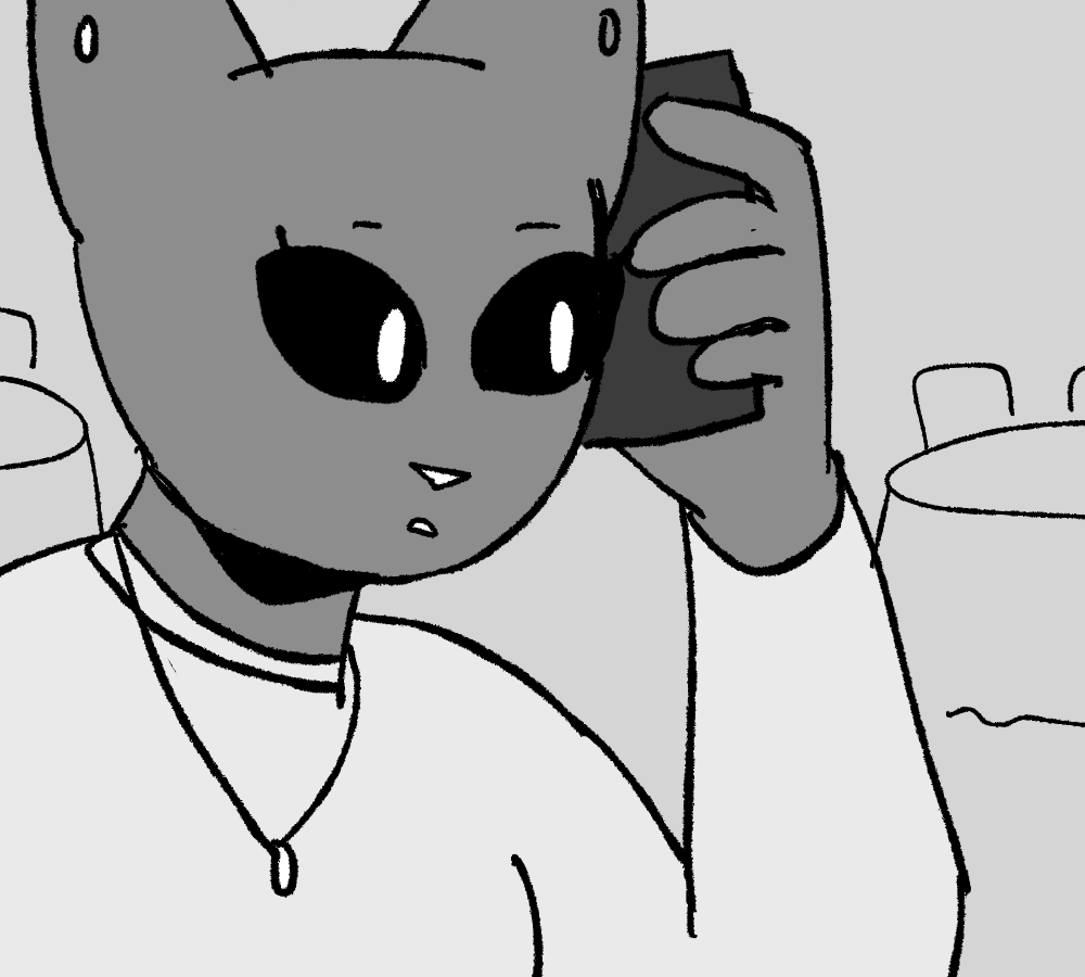 The cat covers the phone. “I have to go. Family emergency.” she tells Daisy before running out of the building, leaving a confused waiter in her wake.
