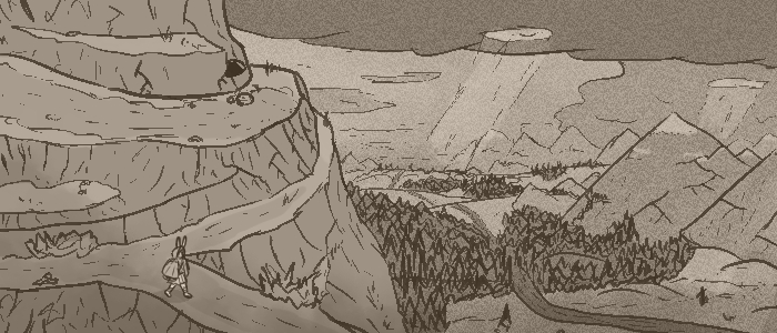 Thunder rumbles in a rolling, roiling wave; with a flash fingers of lightning dance earthward and cast broad shadows, the scent of ozone faint. Together, you reach a gentle slope descending as the road broadens ahead, soggy swamp spreading aside and giving way to the edge of the wilderness -- far in the distance, you can spy the peaks of mountainous terrain and as the canopy parts, you set eyes more clearly on a vast and foreboding sight.