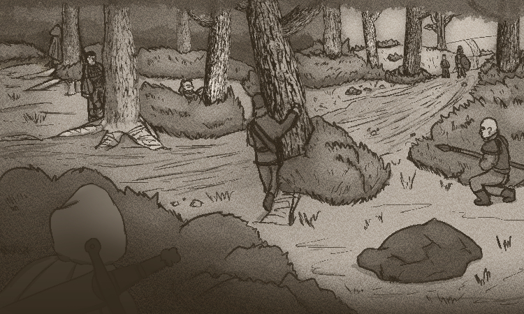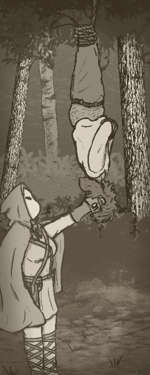 Once you've finished attending to prisoners and plunder, you feel certain in the course of trusting your skill at Pathfinding -- pushing onward until nightfall, that you may cover as much ground as possible while the day remains. Despite the remoteness of your destination, a road of sorts has been relatively maintained through the swampland reaches; Zarin keeps to the road proper as you and Geoffrey navigate the wilderness which flanks it, both keeping hidden for long stretches.