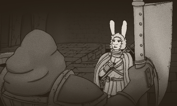 When you have spoken at some length, Zarin seems to relax and open up more freely -- sharing in turn having hailed from the distant INDARAS, far to the east and beyond the Sullen Sea; vassal to the EMPIRE VALEK by conquest, Zarin was but one of many pressed into military service. Across several campaigns Zarin served as a foreign auxiliary and legionnaire, fighting shoulder to shoulder -- or more aptly, far above the soldiers of man with whom they served. Service, and servitude, you learn to be all too familiar to the onager as a people, their large and stout statures and physiques affording them a greater efficacy laborious tasks than that of man.
