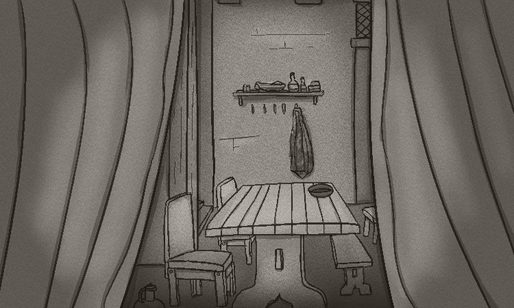 Bedding down for the evening, Geoffrey and Zarin assert that they will cover the needed watches through the night, believing -- accurately, you must admit -- that full and restful slumber will best assure your efficacy at witchcraft on the morrow. Given the great unknown of precisely what obstacles or challenges may await at the Vaults, this seems a sensible concession. Much as you would greatly prefer to sleep beneath the stars where Khasma might shine upon you from on high -- you are set to share the thankfully sizable tent with your companions; it is spacious enough for two, but with one on watch there shan't be overcrowding this eve.