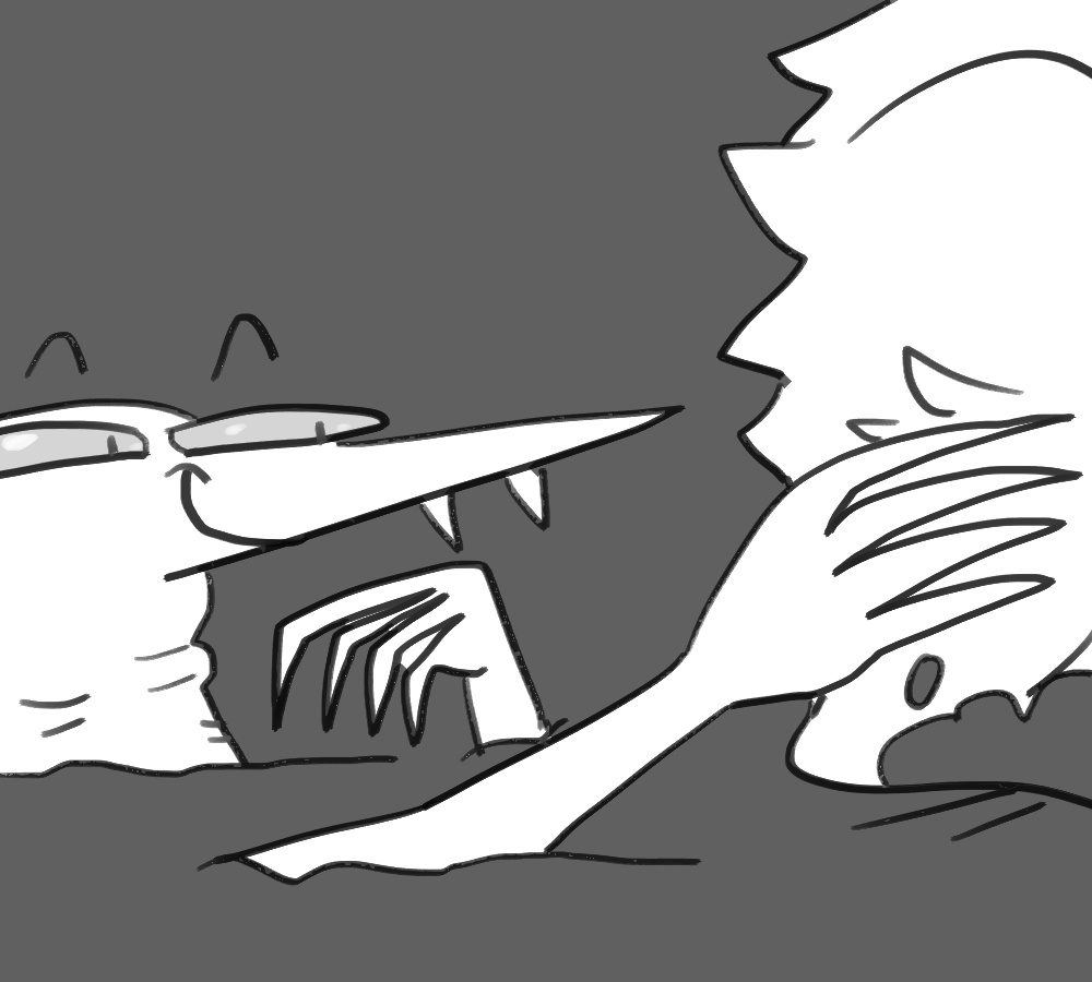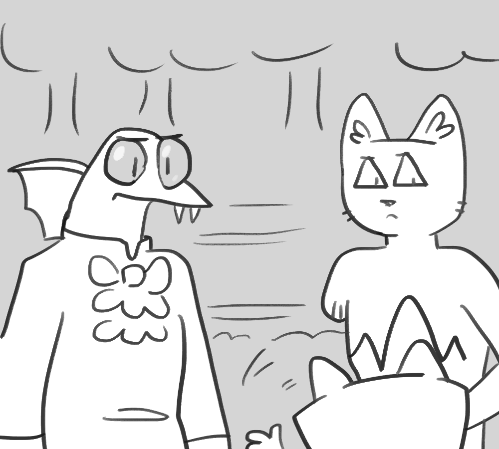There’s a thick layer of dirt between you and verticality. You wriggle your sleek body so that you’re at least facing the right direction and start carefully digging away at the mud. Vampires are very brittle, and sudden movements could easily break bones.