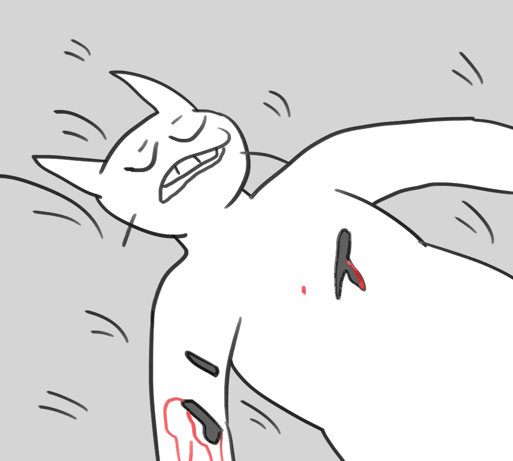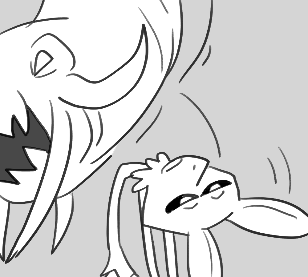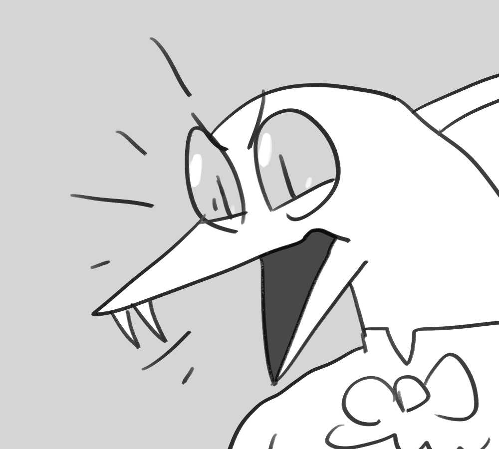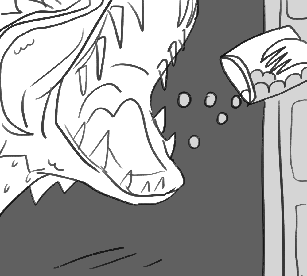 A small white leg pops out of Kibble's side. You hold the end with one hand and position yourself to sink your fangs into the rubbery flesh.