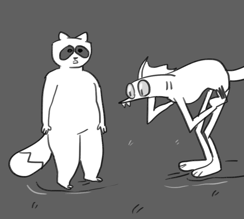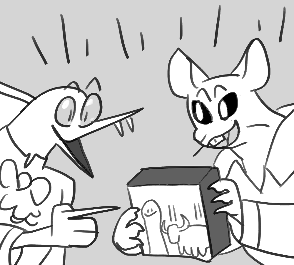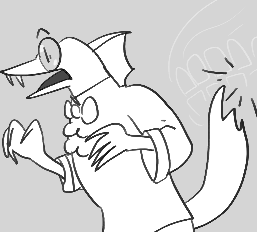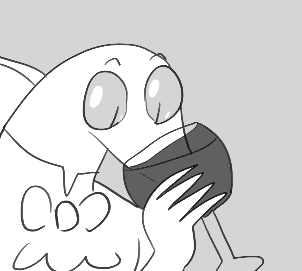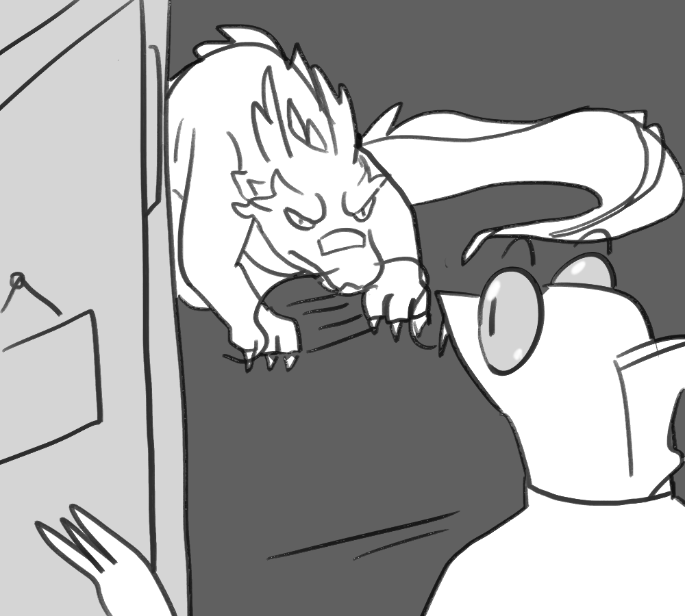 A small white leg pops out of Kibble's side. You hold the end with one hand and position yourself to sink your fangs into the rubbery flesh.